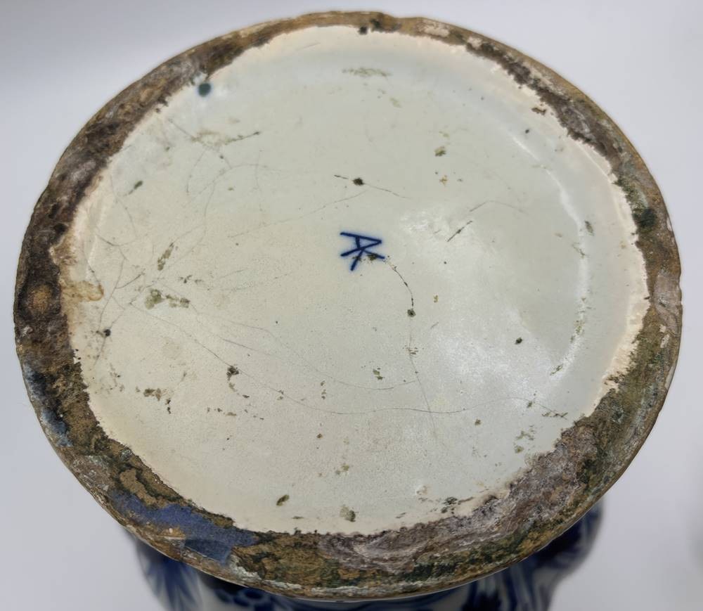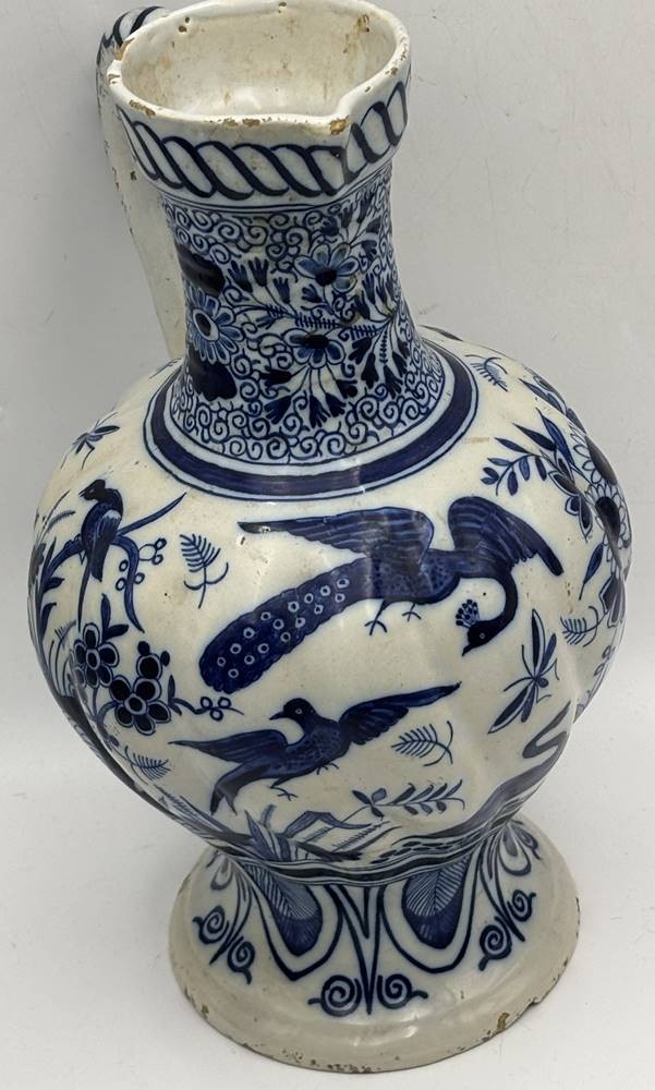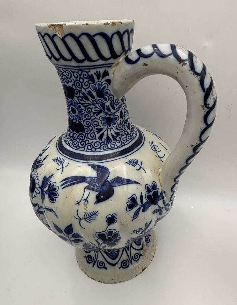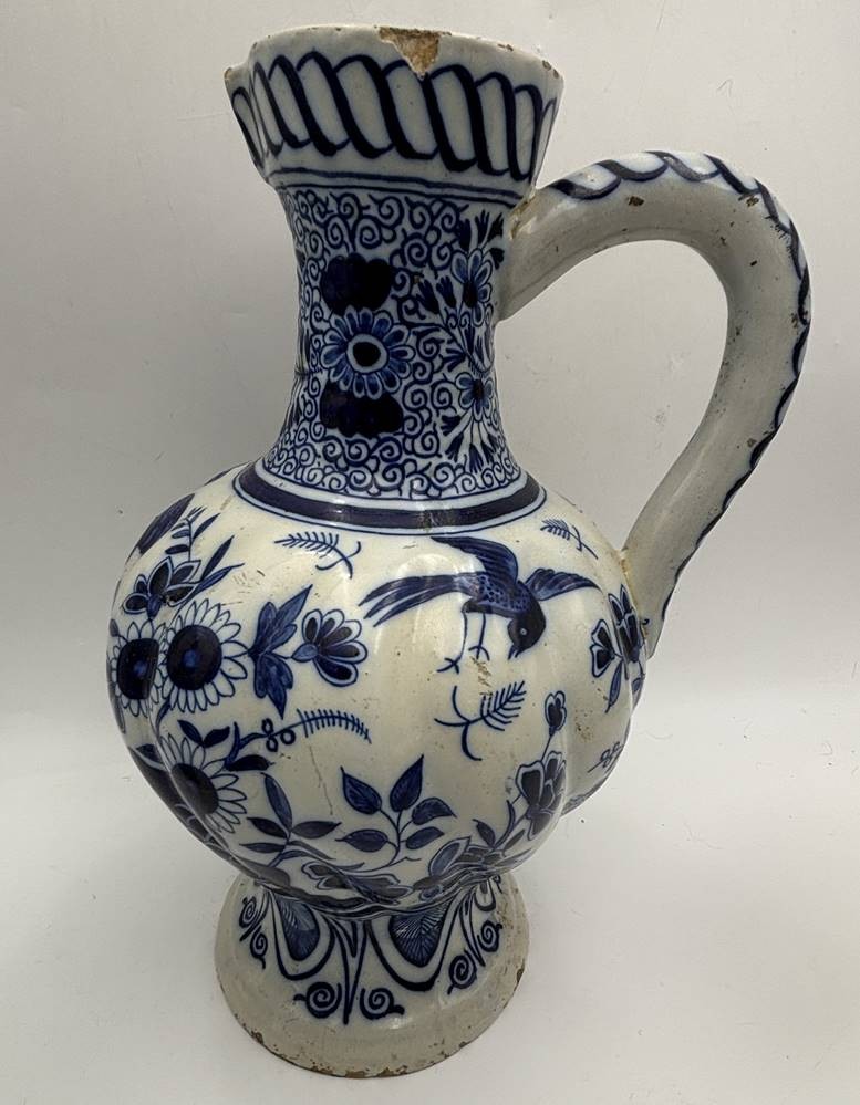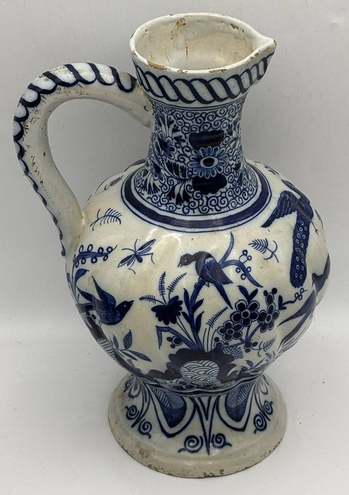 gr. Delftkrug mit Blaumalerei, AK gemarkt, 19. Jhd, Altersspuren, Abplatzer etc., H-31 cm [1]