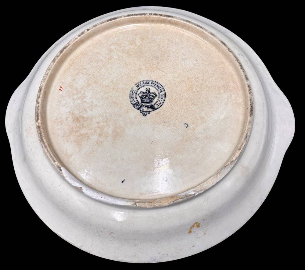 gr. Fayence Schale, England um 1880, D-33 cm, Altersspuren, Standring mit Abplatzer, [1]