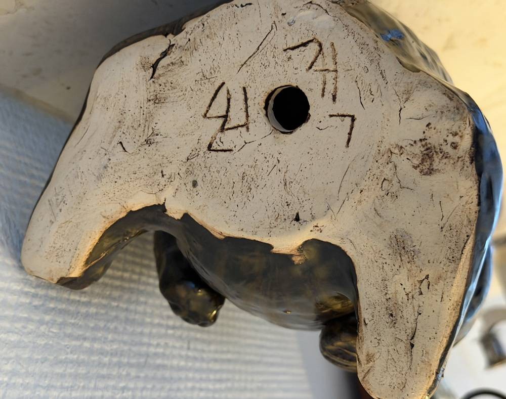 gr. Majolika-Hase, H-30 cm, ein Ohr geklebt [1]
