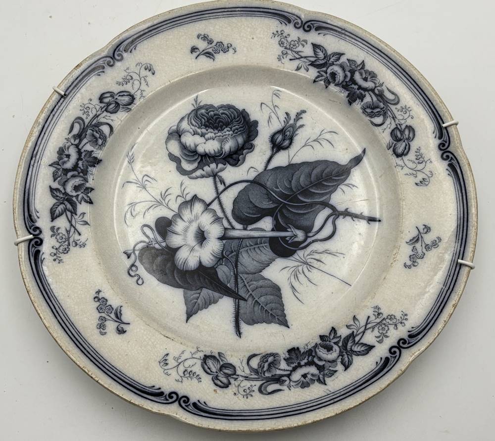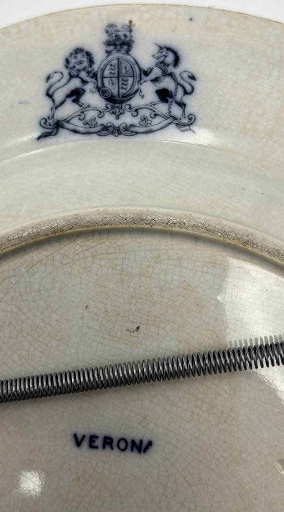 gr. Teller "Ridgway&Morley" um 1850, England, Blaumalerei, Dekor Verona, sammelwürdige Erhaltung, D-27 cm, Handmalerei [1]