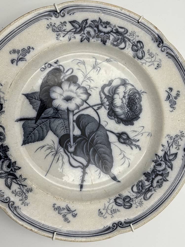 gr. Teller "Ridgway&Morley" um 1850, England, Blaumalerei, Dekor Verona, sammelwürdige Erhaltung, D-27 cm, Handmalerei