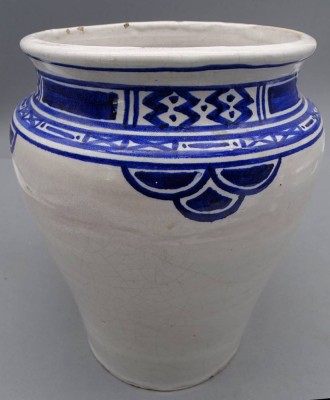 gr. Vorratsgefäss oder ähnliches mit Blaumalerei um 1920 "Karlsruhe", Rand mit kl. Glasurabplatzern, H-24 cm, D-21 cm [1]