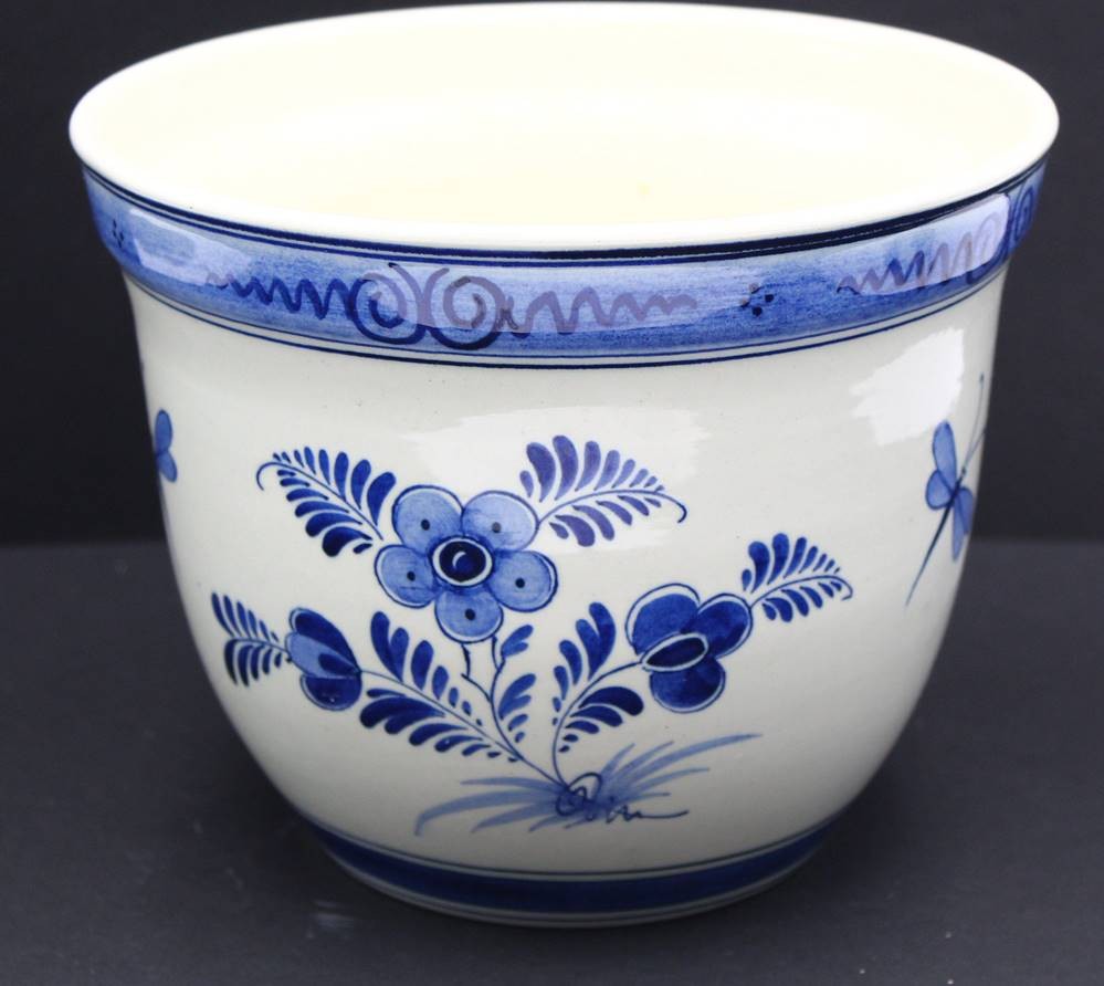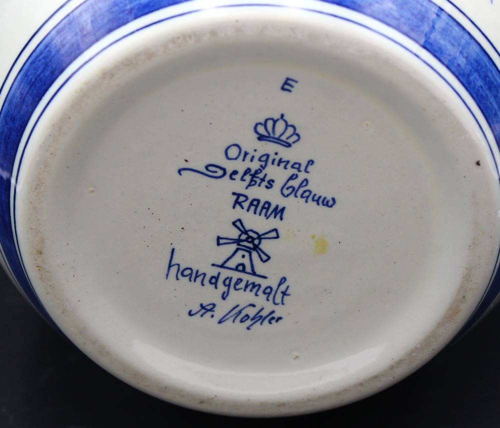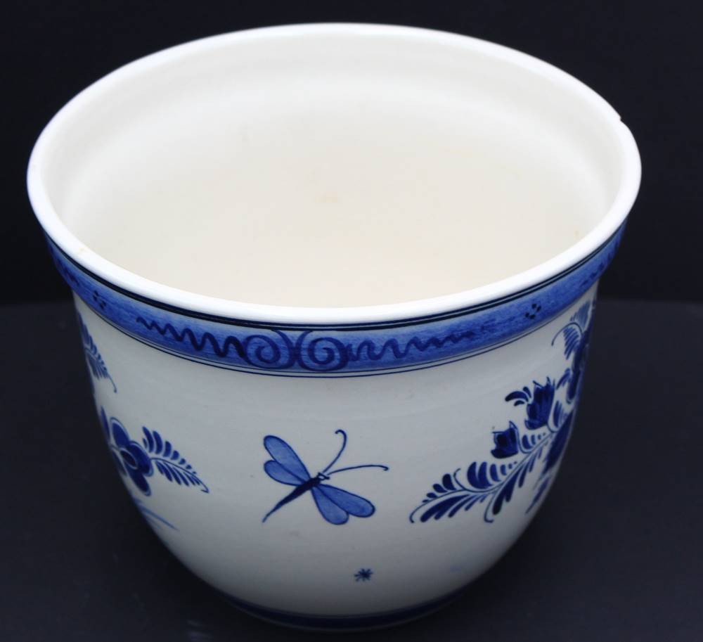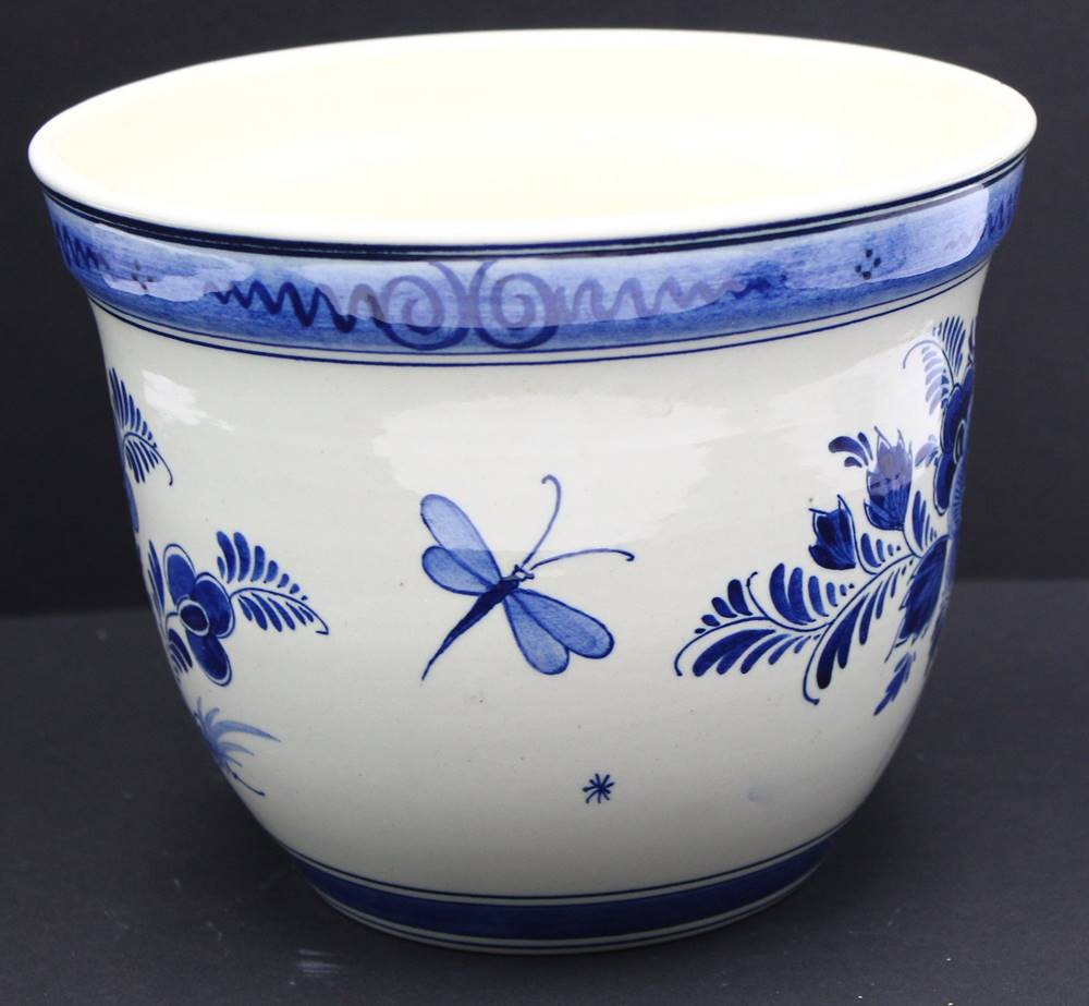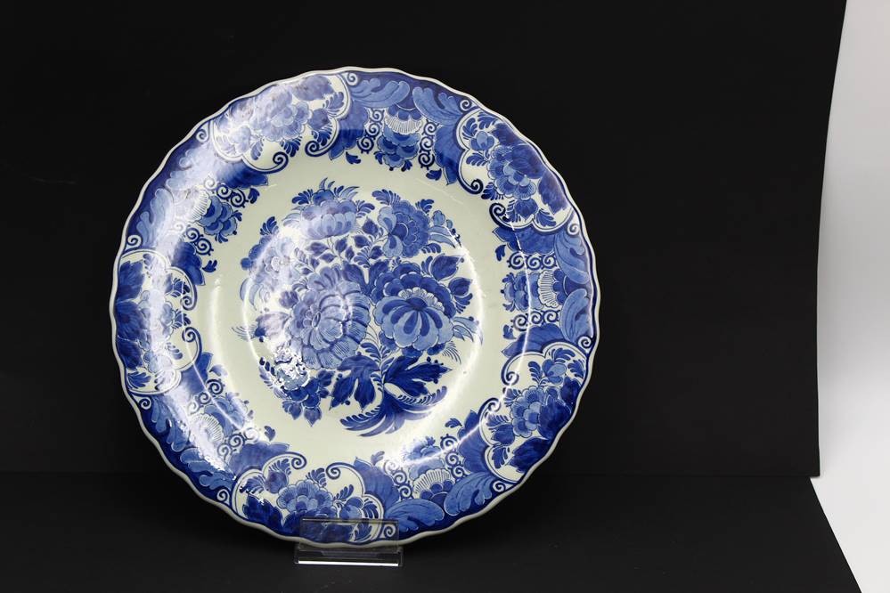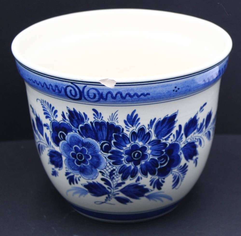 gr. Wandteller und gr. Schale (Blumenübertopf) Delft "RAAM" Blaumalerei, Teller Unterseite und Topfrand mit Chips, D-32 cm, H-16 cm, D-20 cm [1]