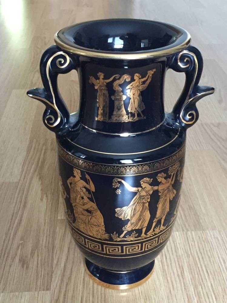 Griechische Amphore Vase - Handarbeit Griechenland - 24K Gold Dekor - Kobaltblau/Schwarz, H- ca: 27,5 mm B ca : 11 mm, [1]