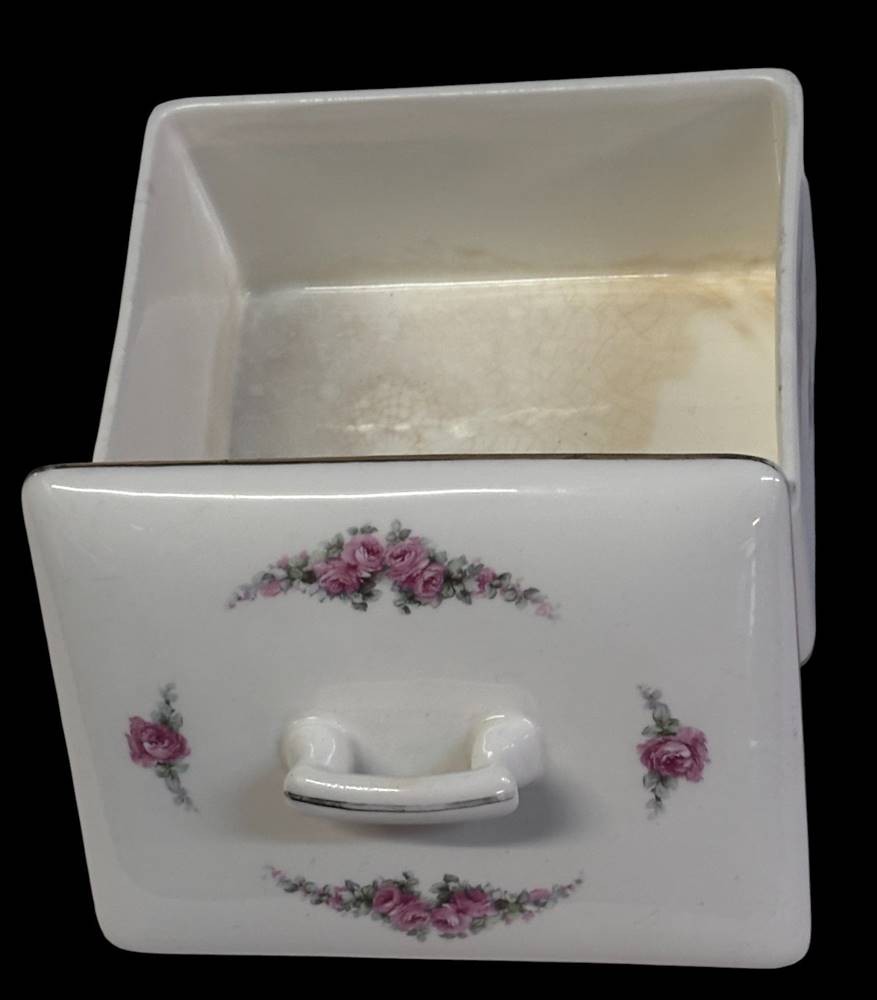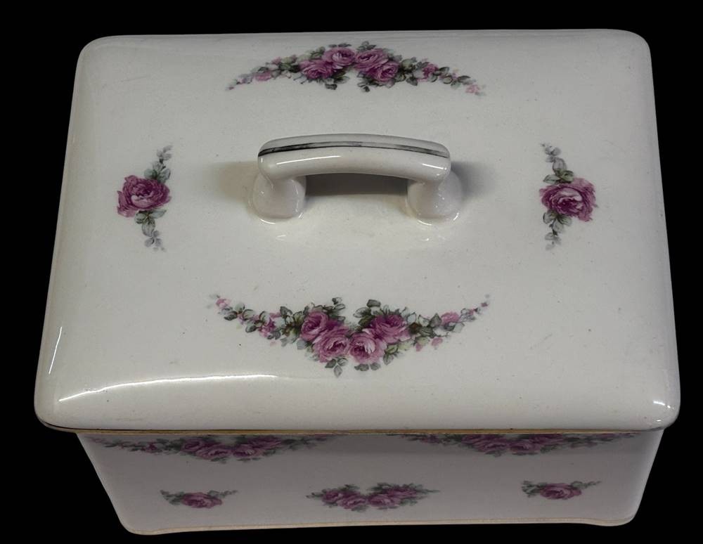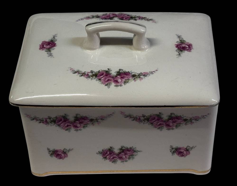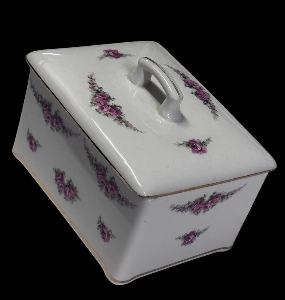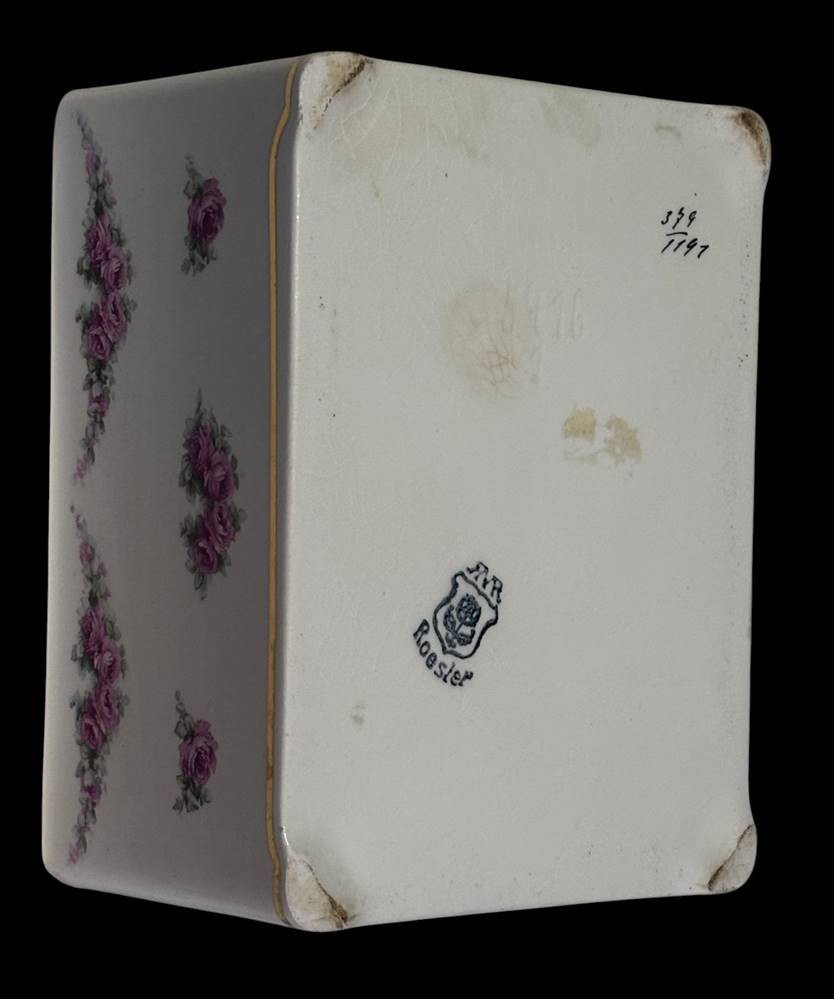 grosse Deckeldose "Max Roesler", Rosengirlanden, Fabrikmarke, Gold leicht berieben, H-13 cm, ca. 18x13 cm [1]