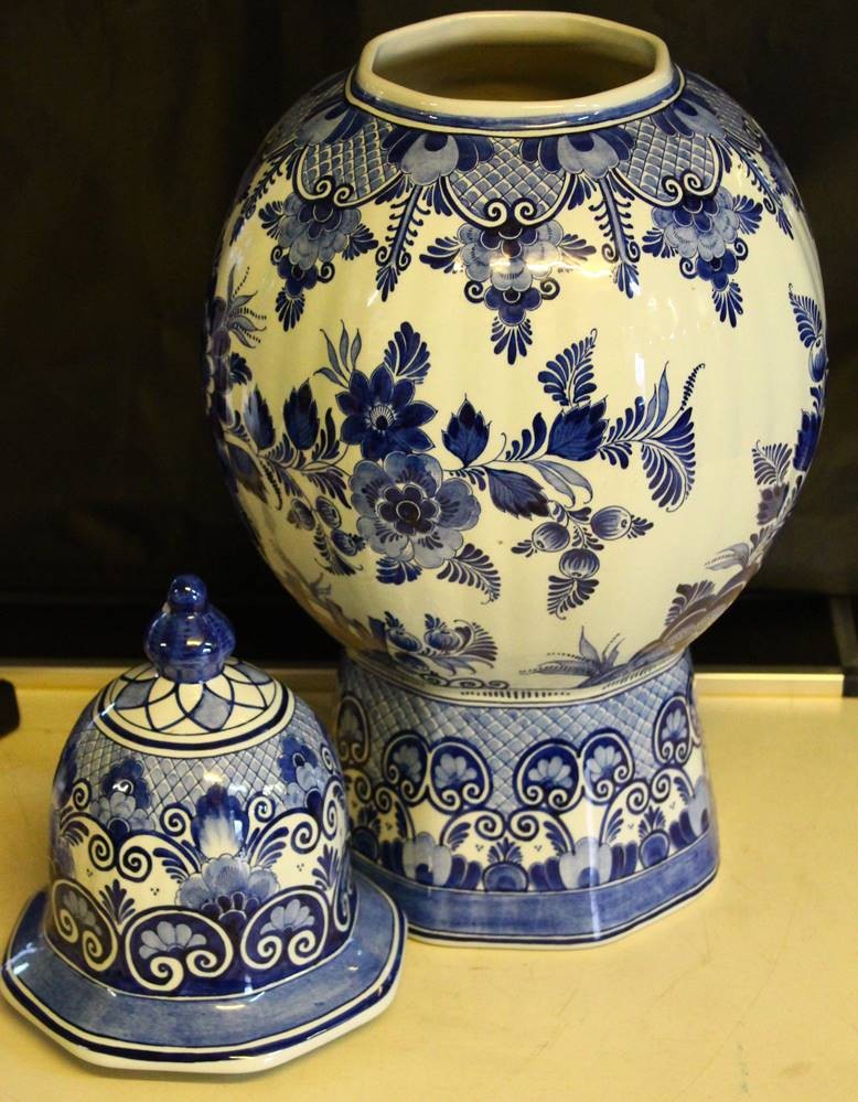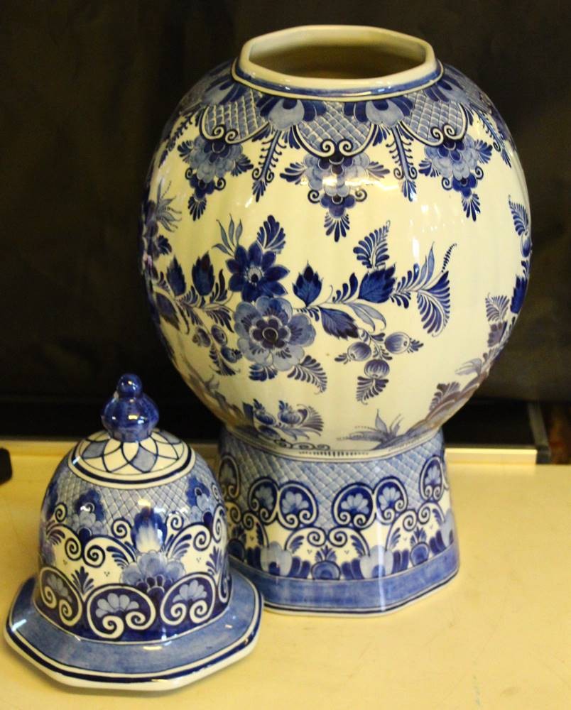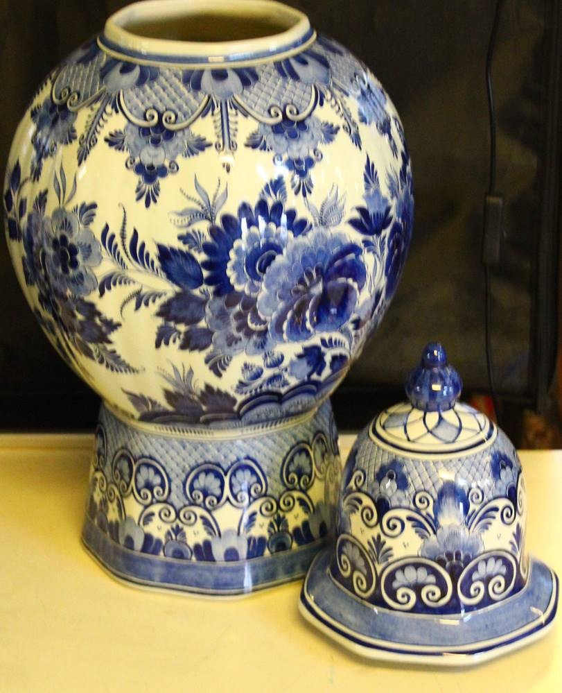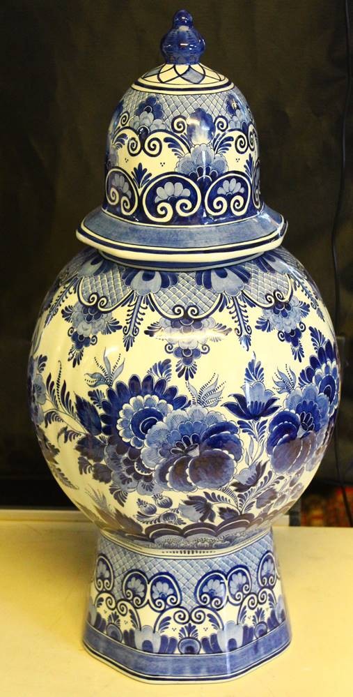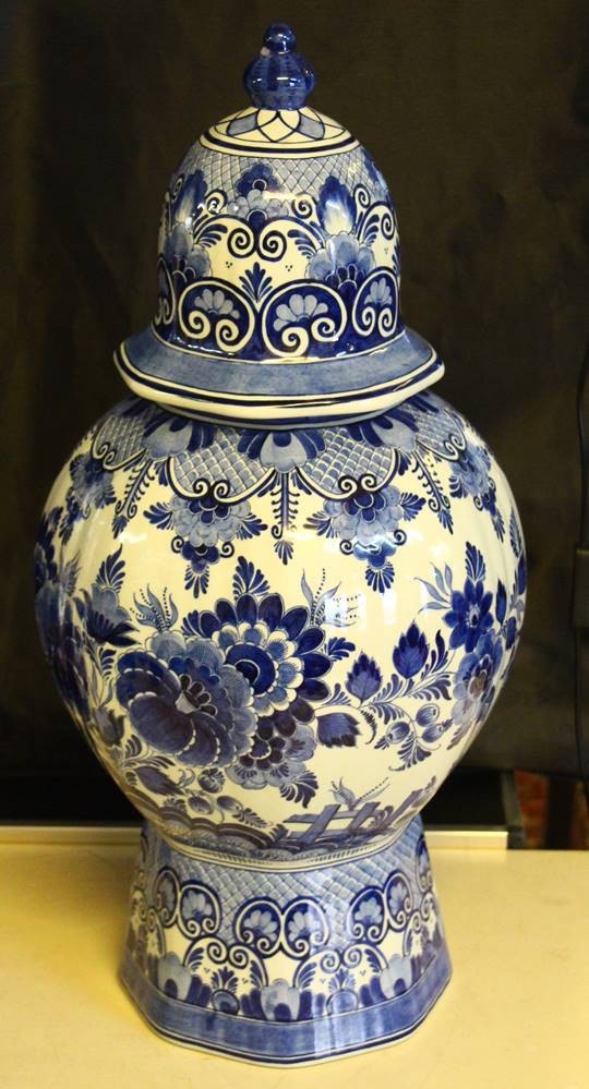 grosse Deckelvase, orig. Delfts RAAM, Blaumalerei, handgemalt, signiert, H-60 cm [1]