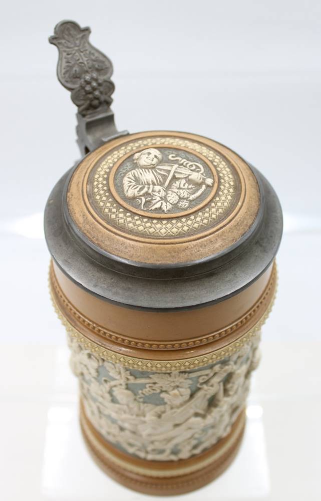 großer Villeroy & Boch Mettlach Bierkrug aus Steinzeug, um 1890, ca. H-25cm [1]