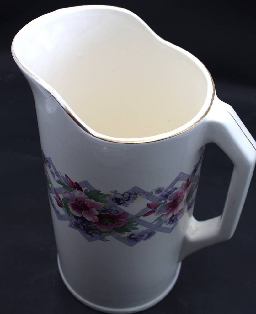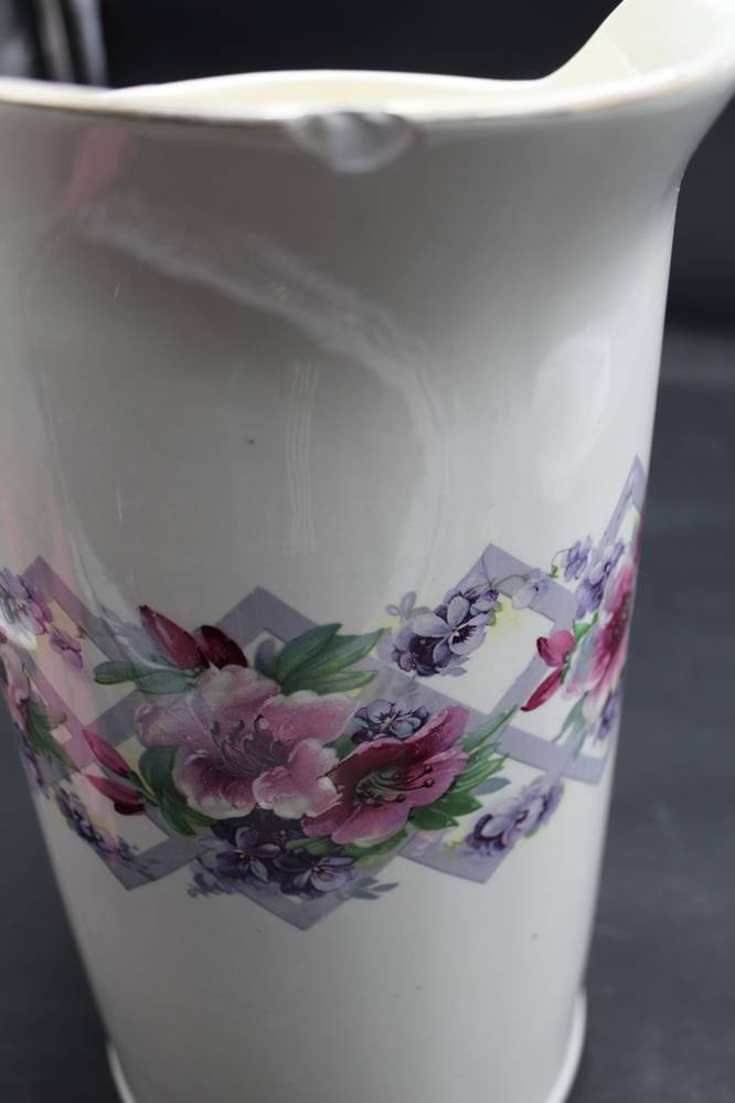 grosser Wasserkrug aus Waschset "Theodor Paetsch/Frankfurt/Oder" H-36 cm, Blumendekor, Standring mit Abplatzer [1]