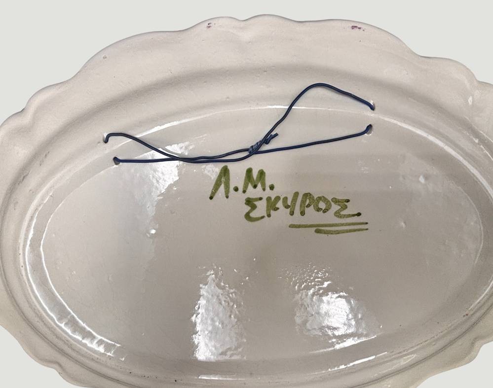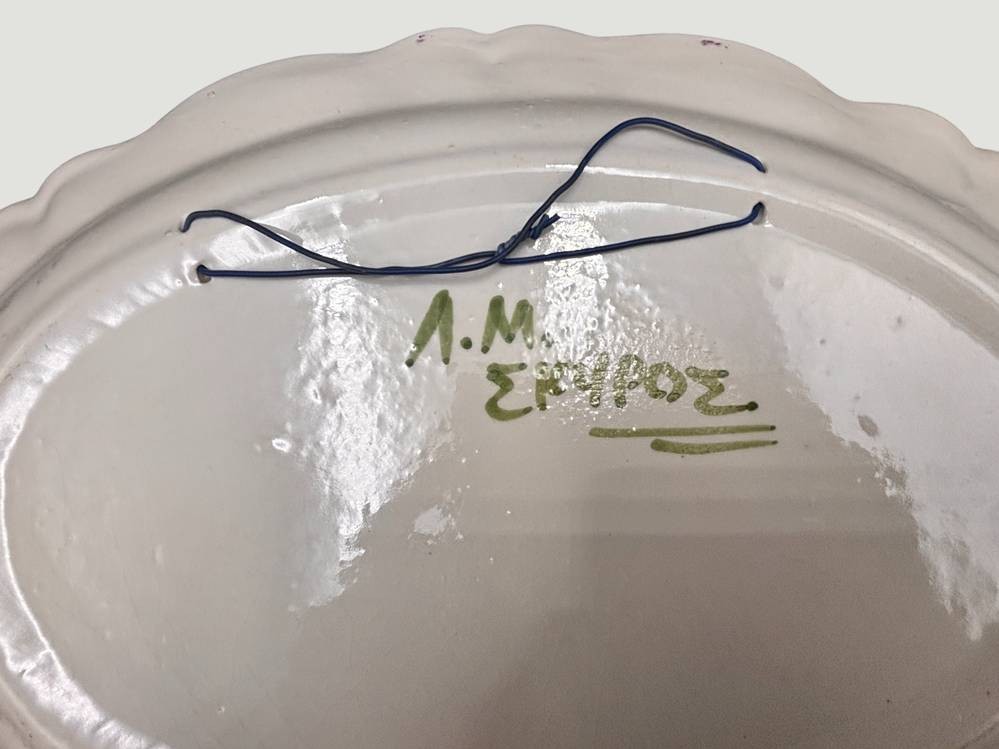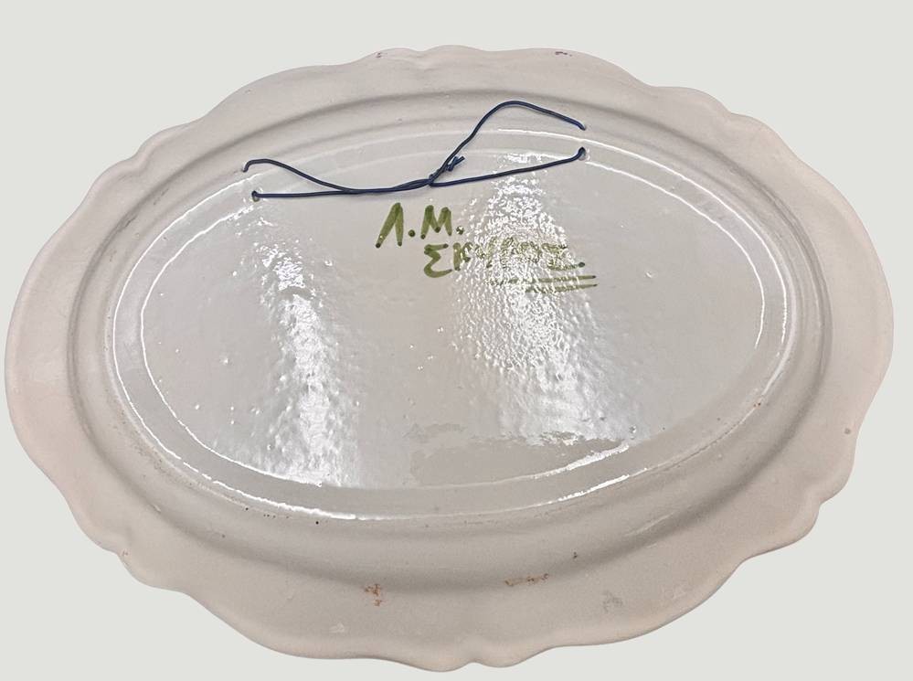 handgemalte Kunstkeramikplatte, signiert, wohl Griechenland, 39x27 cm [1]