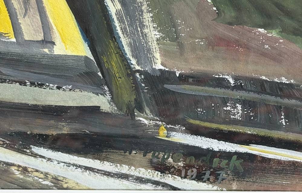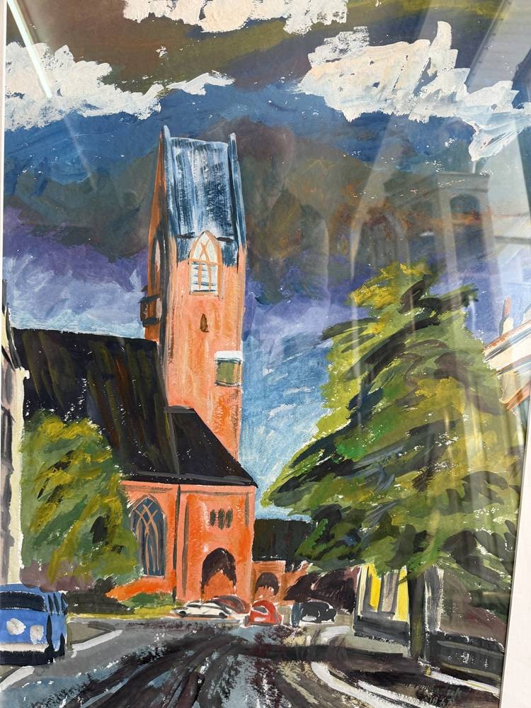 Hans PAPENDIECK (1928-1993) 1977,"Die St. Petri Kirche in Cuxhaven" Mischtechnik, ger/Glas, RG 98x78 cm [1]
