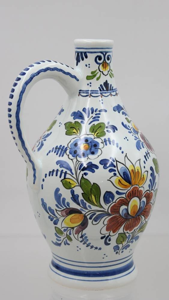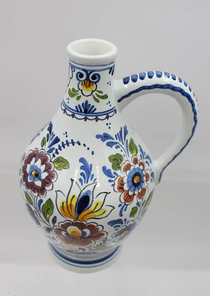 Henkelkrug, Delft, de Fles, polychr. florales Dekor, ca. H-21cm [1]