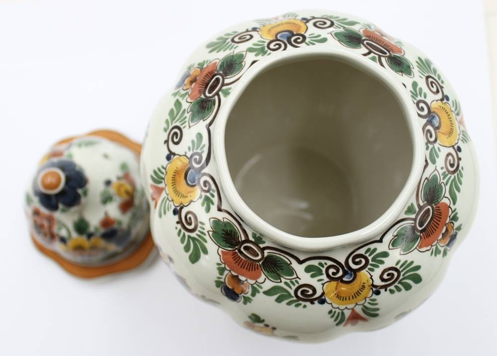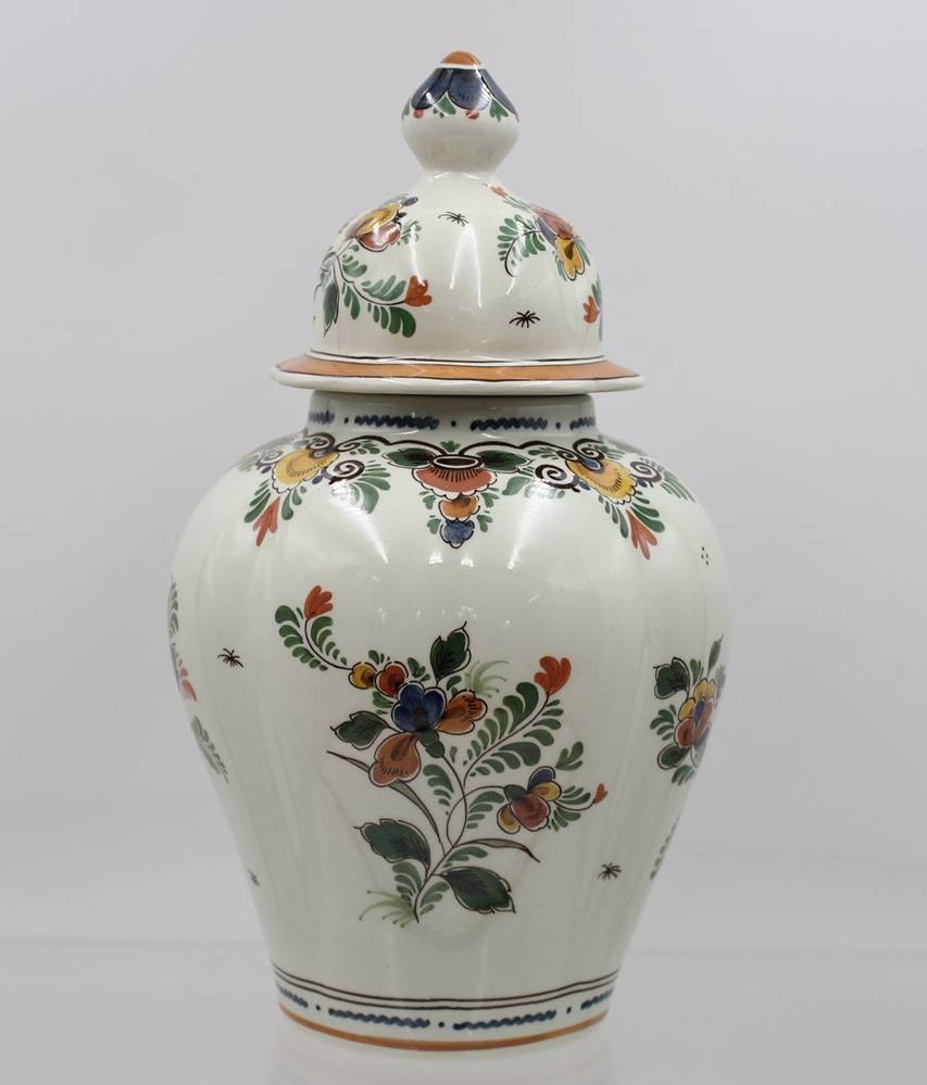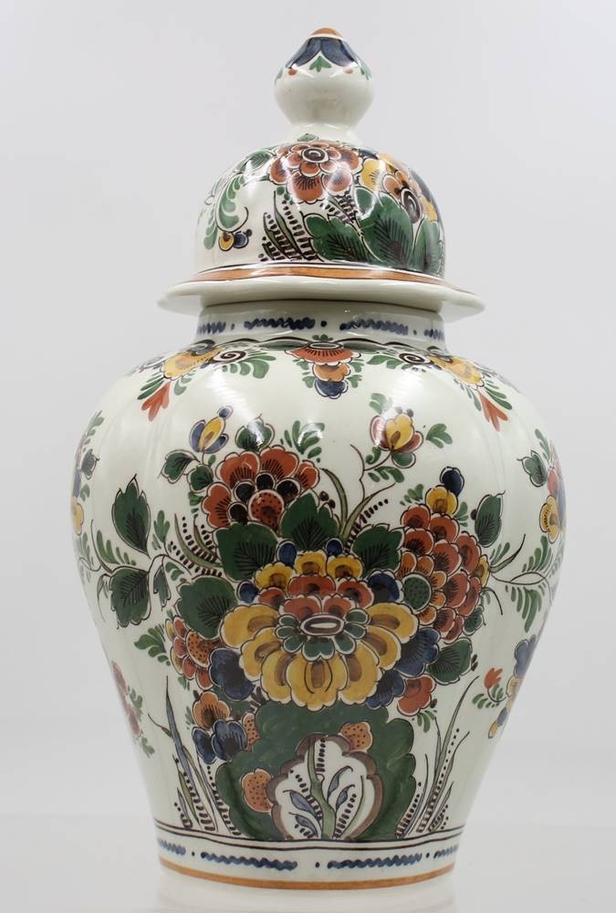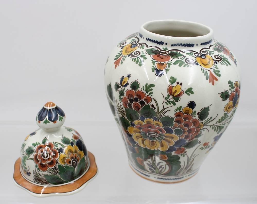 hohe Deckelvase, RAAM Delft, polychr. florales Dekor, ca. H-31cm [1]