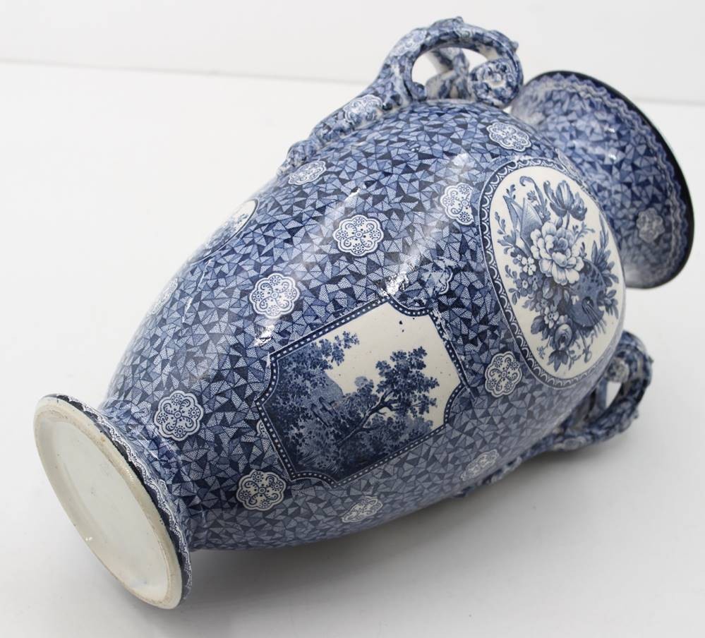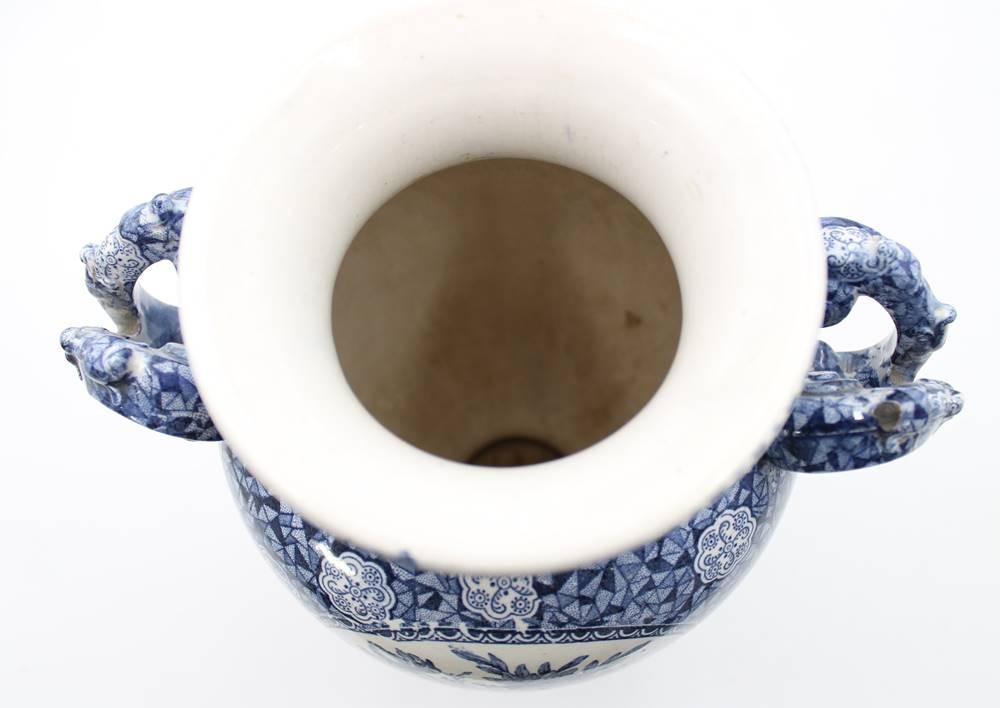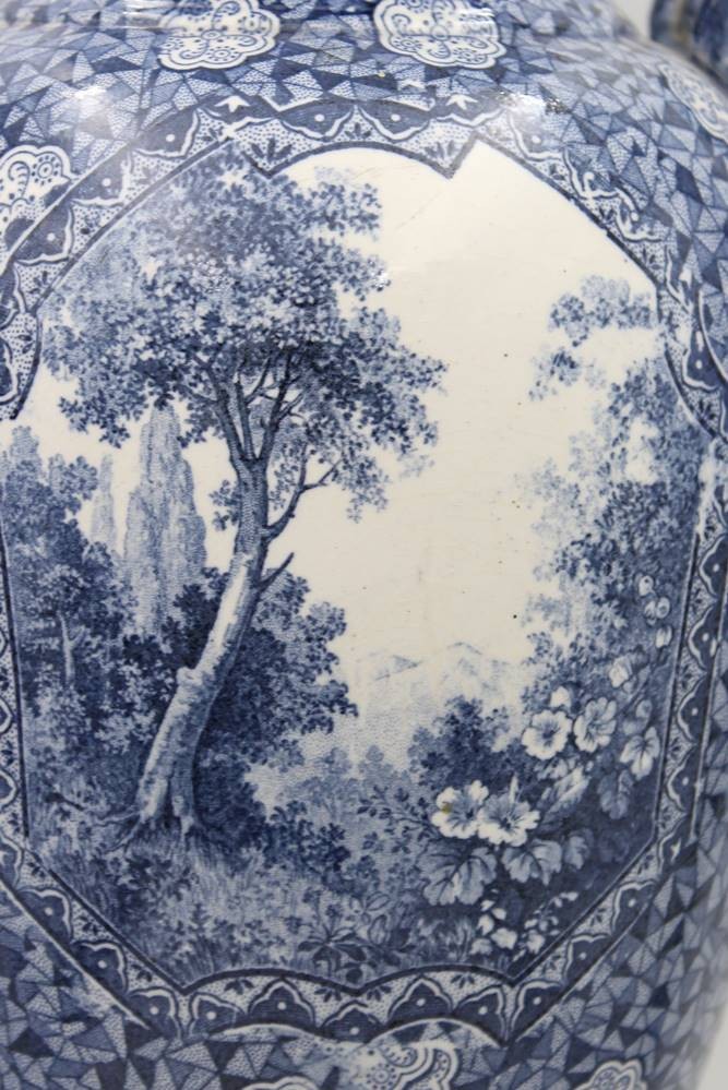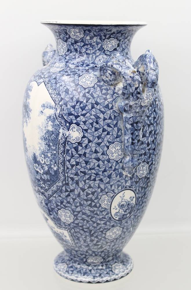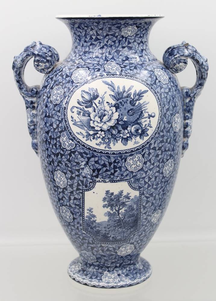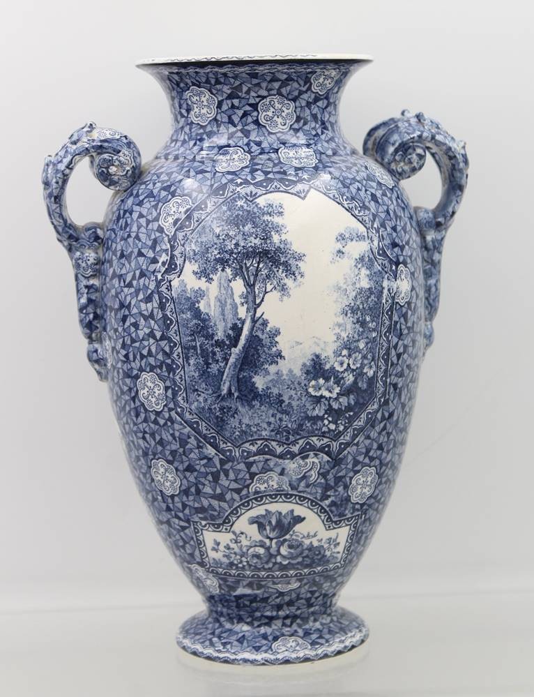 hohe Vase um 1900, Landschaftsdekor, wohl Villeroy & Boch, 1x an Griff min. bestossen, ca. H-30,5cm [1]