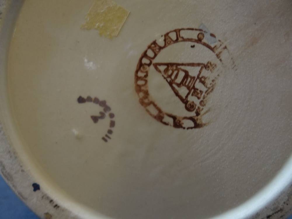 hoher reliefierter Krug "Gerz", buntes Dekor, Zinndeckel, H-30 cm, gut erhalten [1]