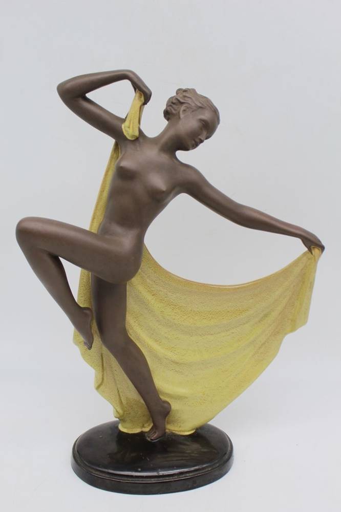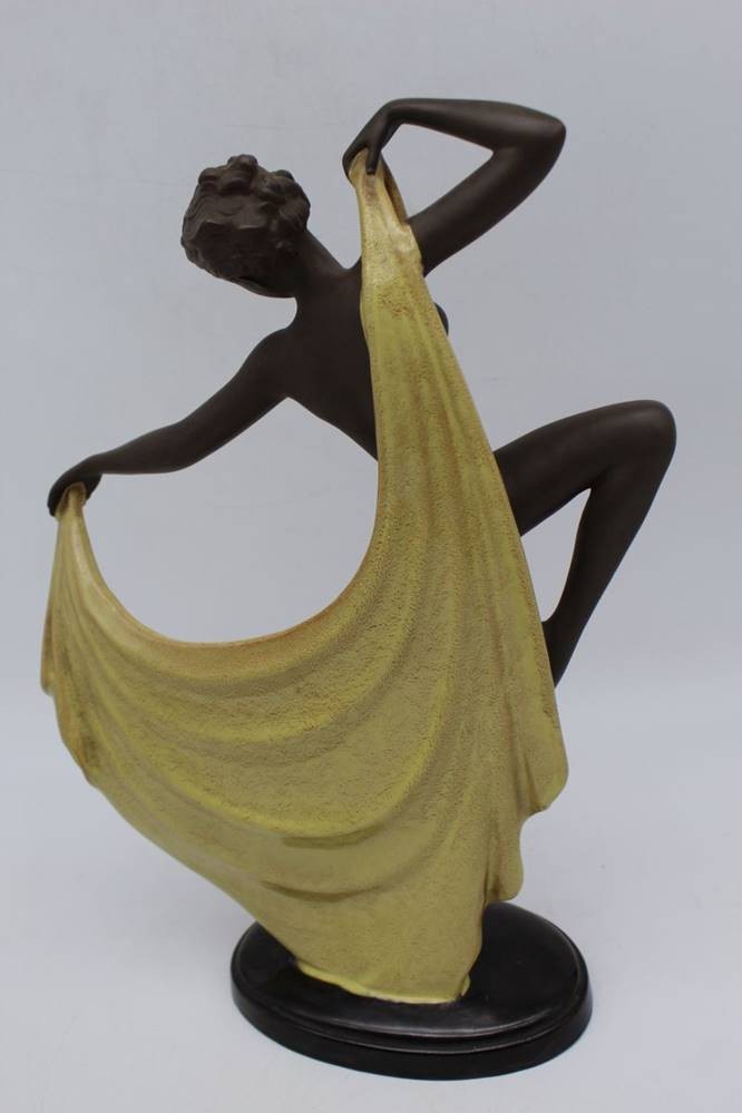 Josef LORENZL (1892-1950), ,Nackttänzerin mit Umhang Goldscheider-Wien, Mod. Nr. 8462,, H- 41 cm [1]