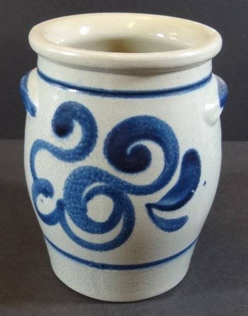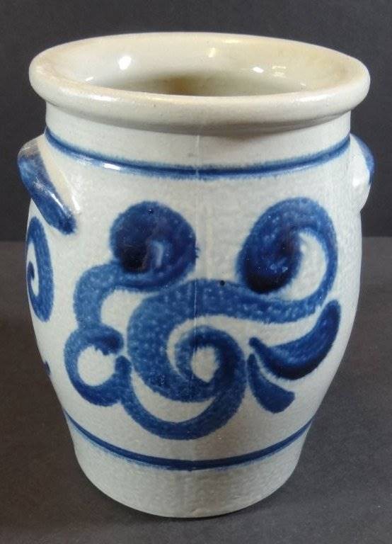 kl. Kruke und Schmalztopf mit Blaumalerei, Westerwald, H-15 und 8 cm [1]
