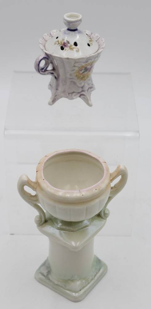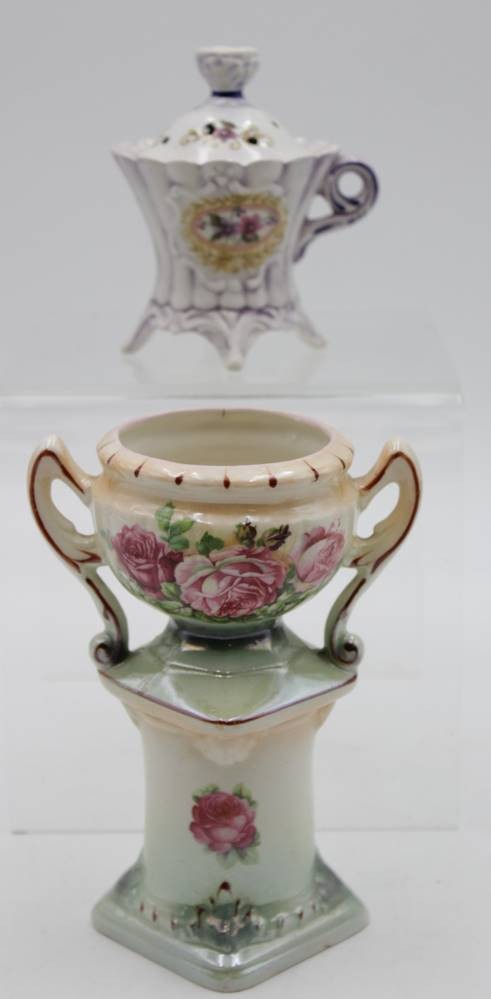 kl, Zierdose sowie kl. Vase auf Stand, älter, ca. H-16cm u. 11cm. [1]