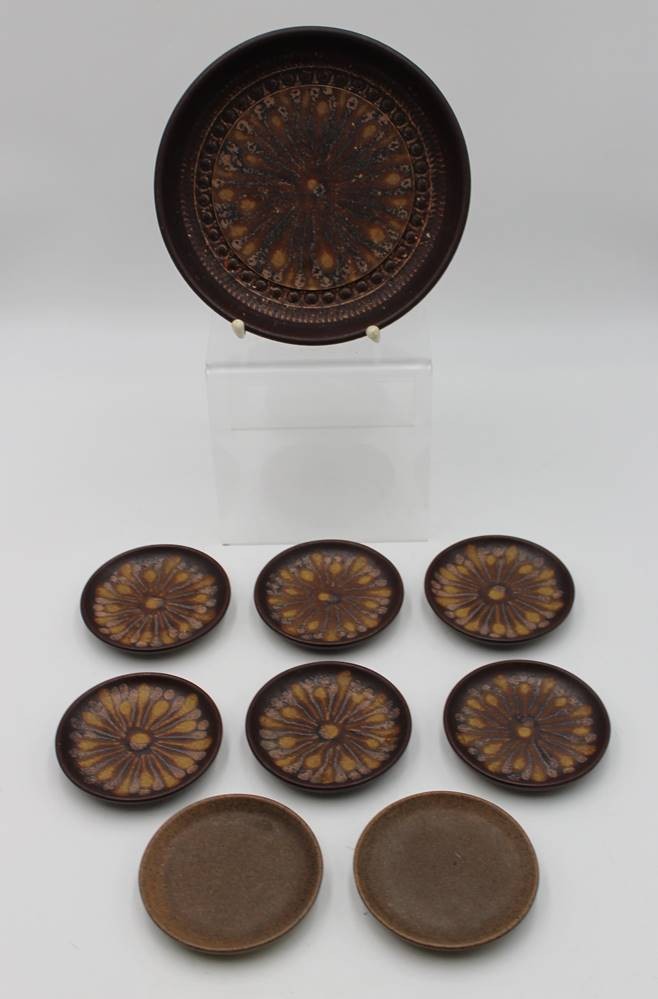 Konfekt-Set, Silberdiestel, Schale mit 6 kl. Tellern anbei 2 Teller ohne Dekor, Schale H-4,5cm D-20,5cm und D-10cm. [1]