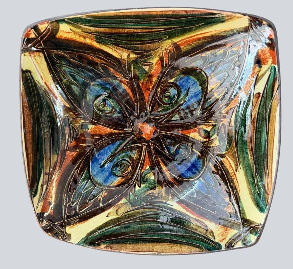Kunstkeramik-Schale aus der Cuxhavener Keramikwerkstatt Bücking Börnsen, um 1970, H-6 cm, 20x20 cm [1]