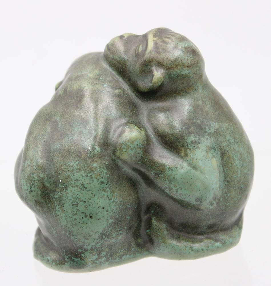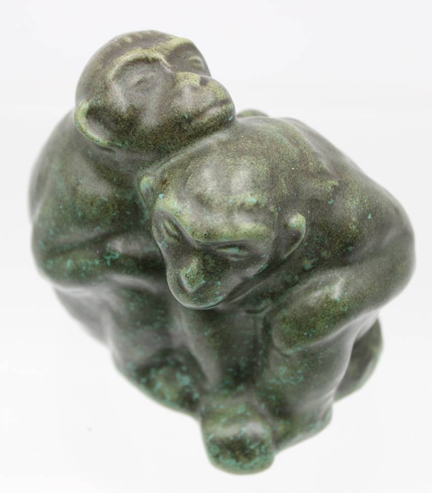 Lauritz HJORTH (1834-1912, Danmark, Affenpaar, Keramik, 9x10 cm, signiert [1]