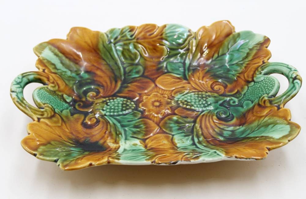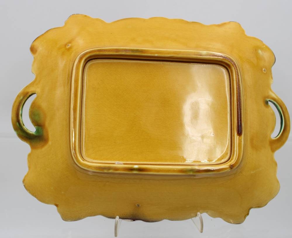 Majolika-Servierplatte, ungemarkt, älter, H-4,7cm B-27,5cm T-20cm [1]
