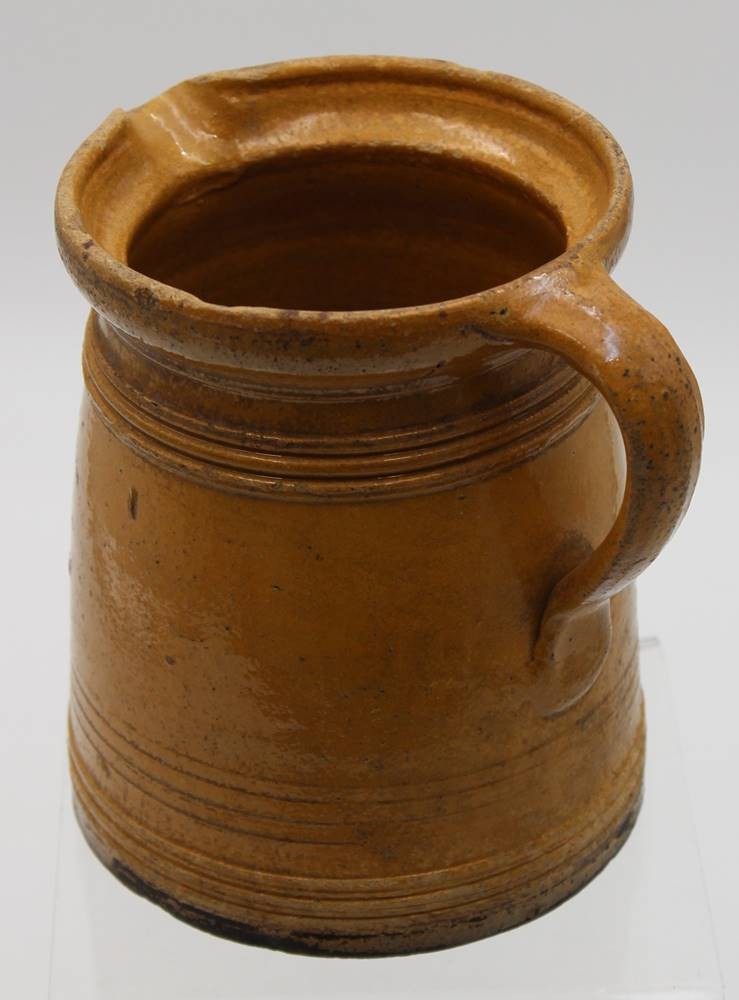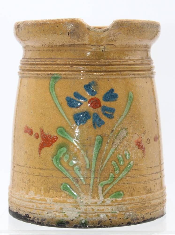 Milchkrug um 1900, floral bemalt, Altersspuren, ca. H-16,5cm. [1]