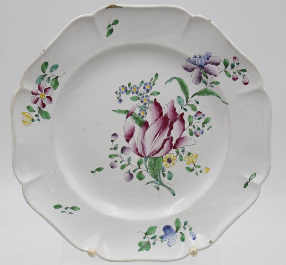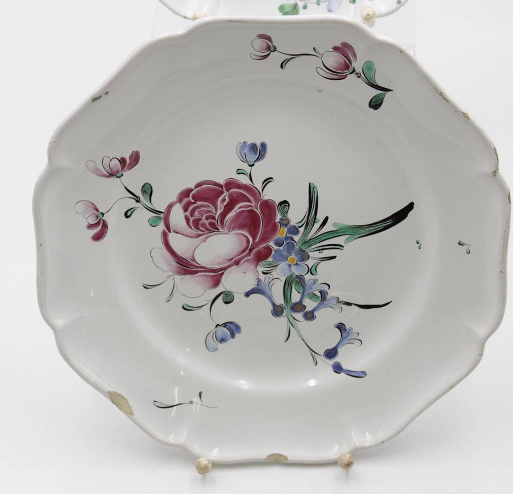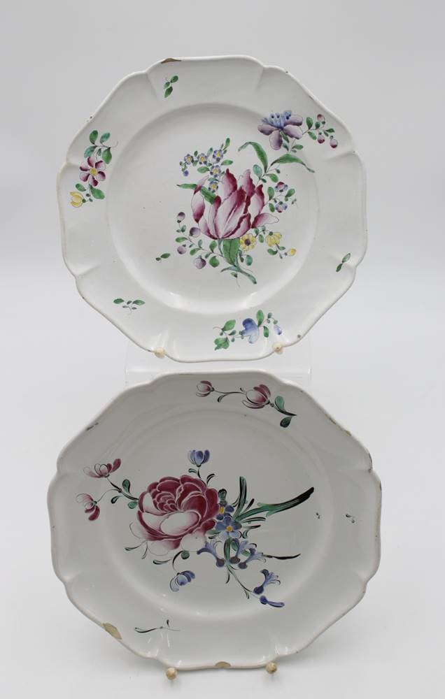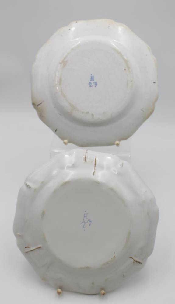 Paar Teller, älter, florale Bemalung, an den Rändern bestossen, gemarkt, D-24cm.