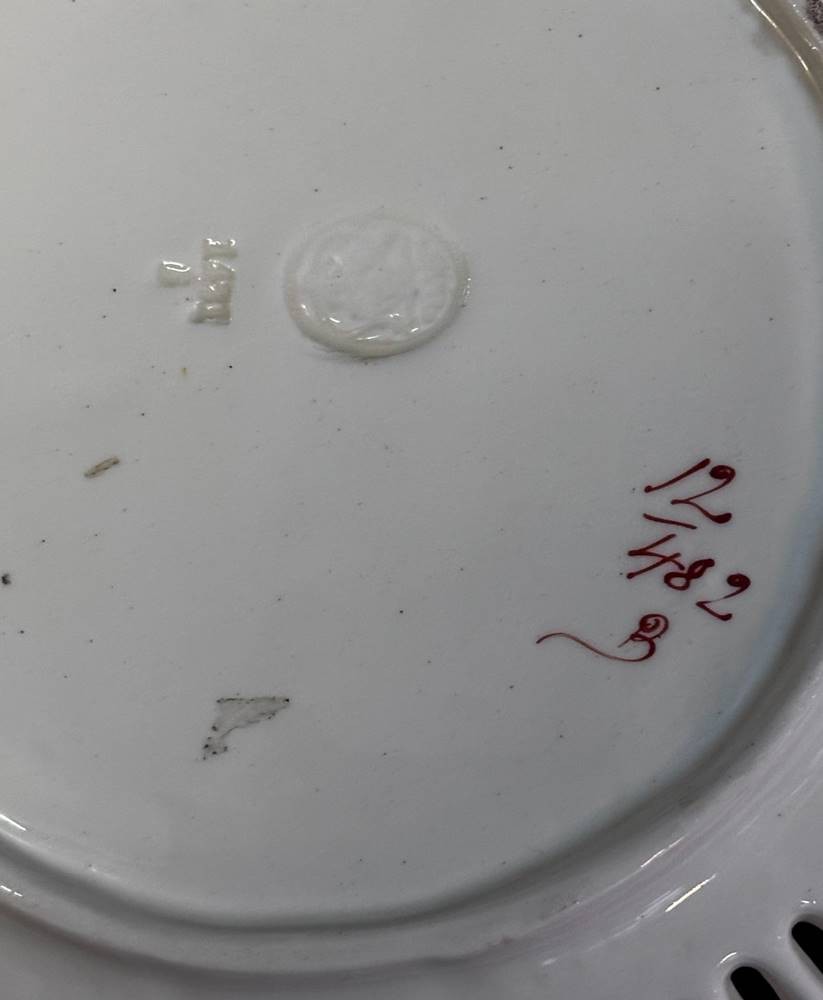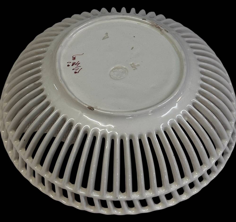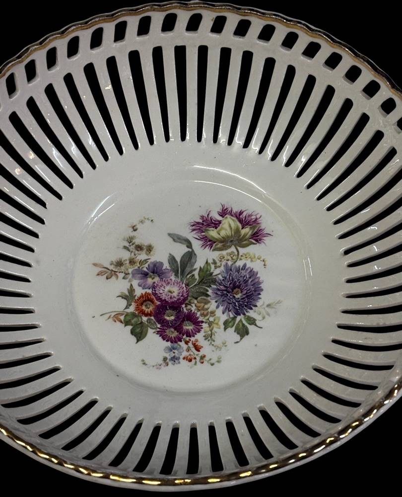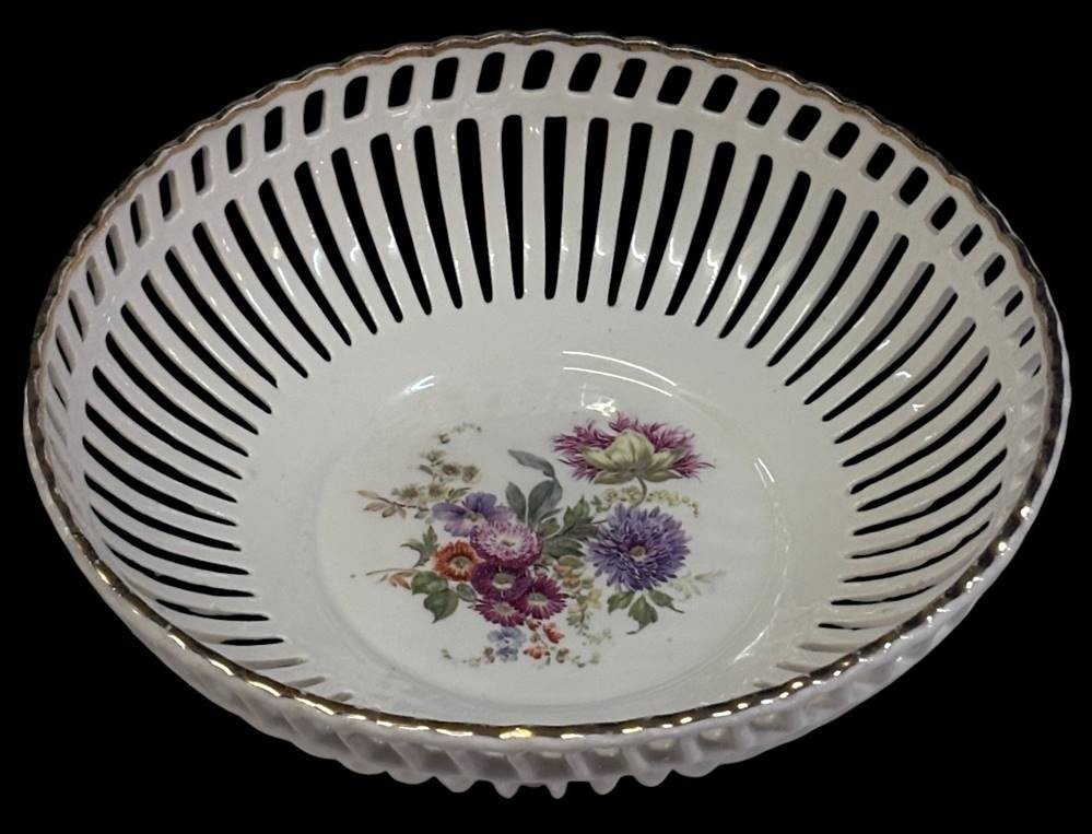 runde Durchbruchschale "Max Roesler" Pressmarke um 1900, Blumenbouquet, H-7,5 cm, D-24 cm, 1a Zustand [1]