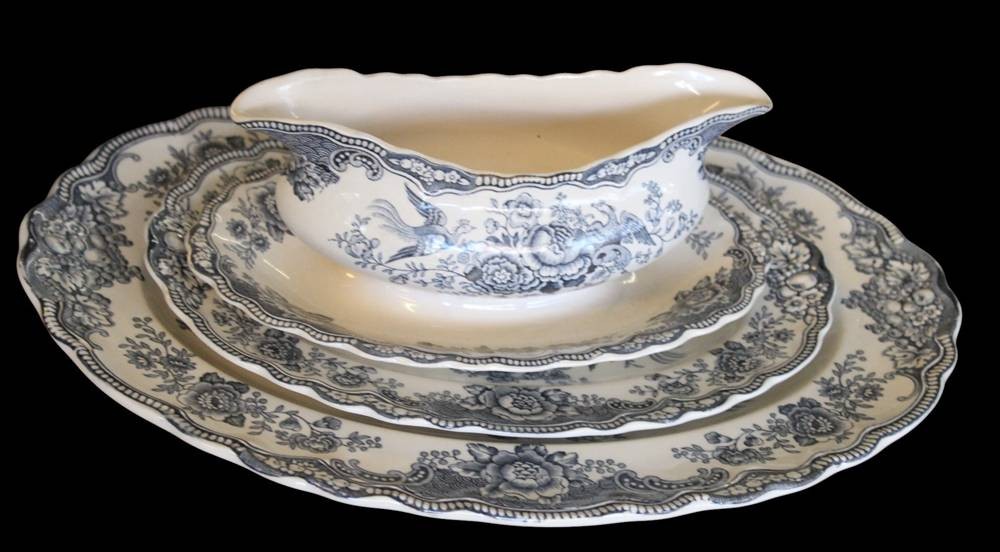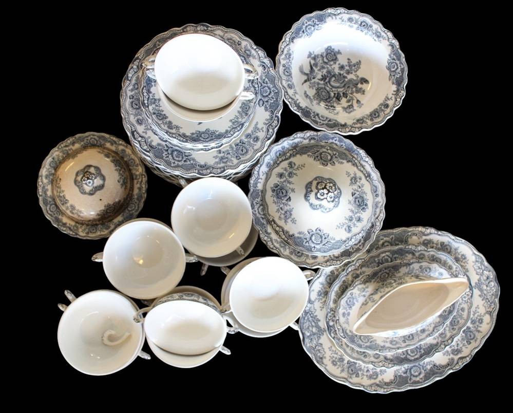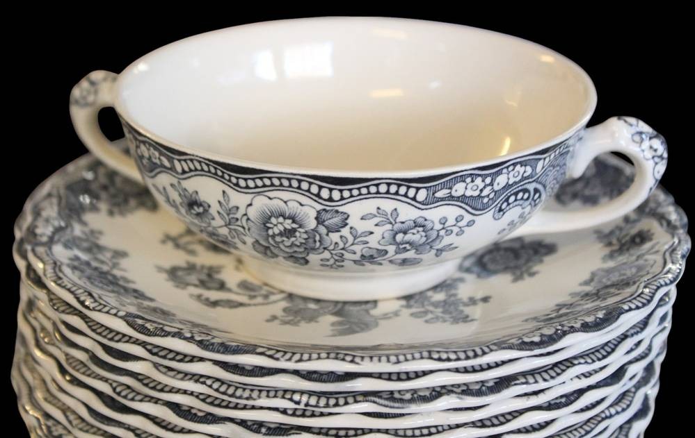 Speiseservice "Bristol" Crown Ducal, 42 Teile, für 12 Personen, 1 Tasse mit Altriss, 1 Tasse Henkel ab