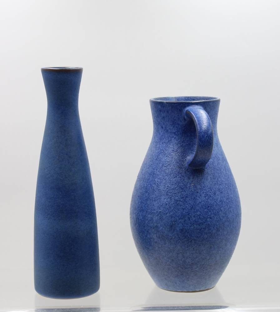 Vase und Krug, blaue Glasuren, Karlsruhe u. Bückeburg, ca. H-28,5cm [1]