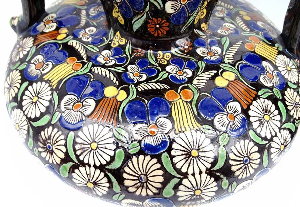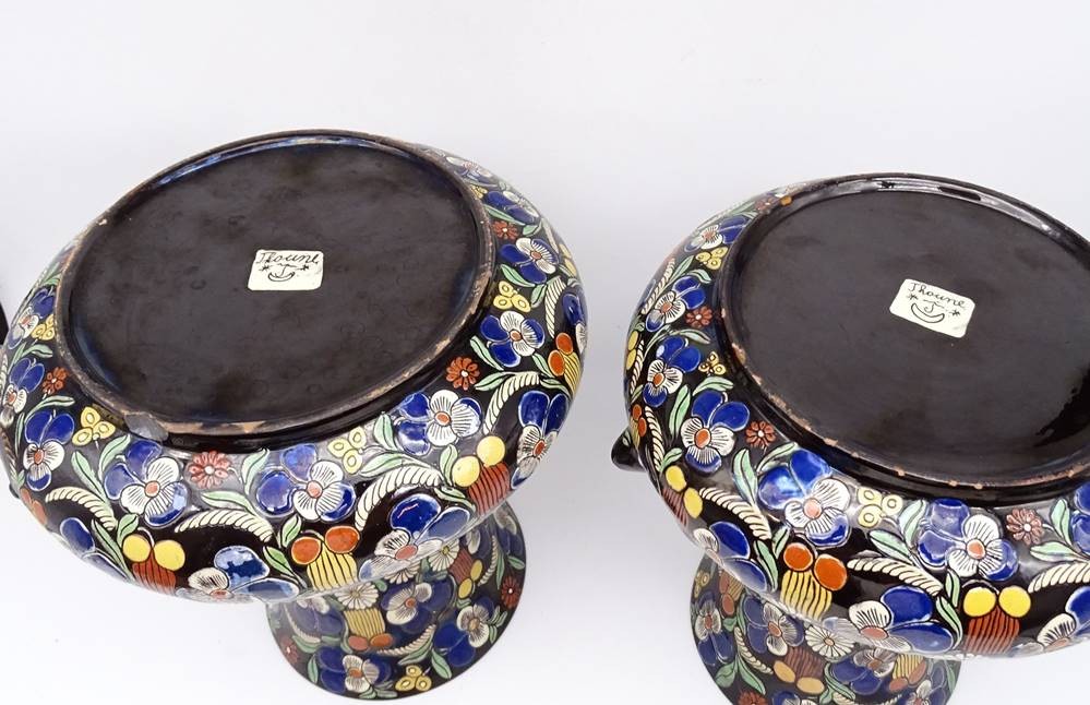 Vasen Paar gemarkt" Thoune " , Blumendekor, 1x oberer Rand mit Chip, ca. H-29cm