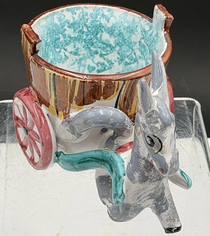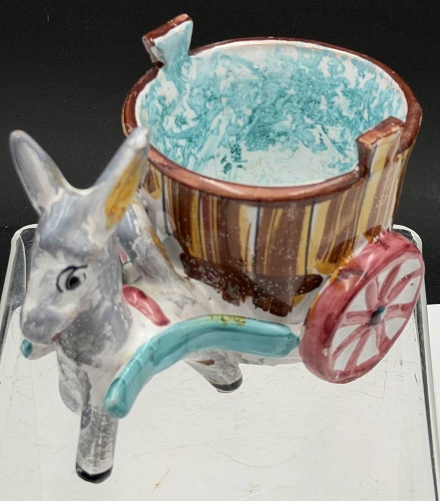 vintage Fayence Anbietschale, Eselskarren, Italy, H-11 cm, L-15 cm [1]
