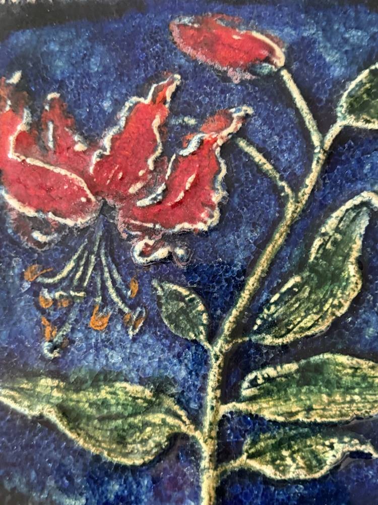 Wandfliese, Karlsruher Majolika mit Lilie, Entw. Werner Meschede 1967. 28x28 cm
