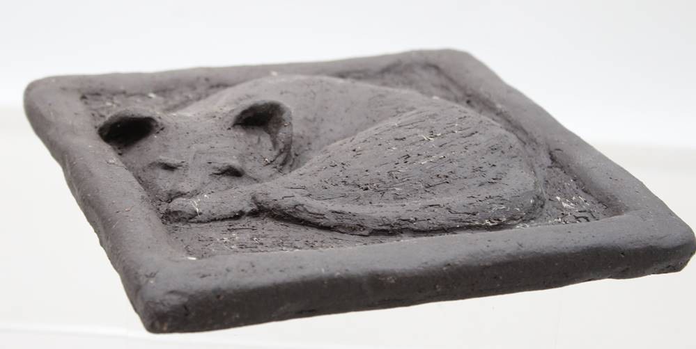 Wandkeramik, Katze, monogrammiert Ch.J., ca. 18,5 x 18,5cm [1]