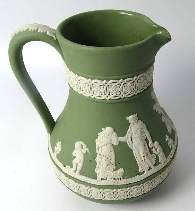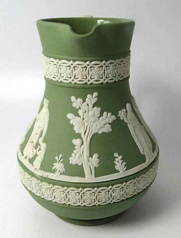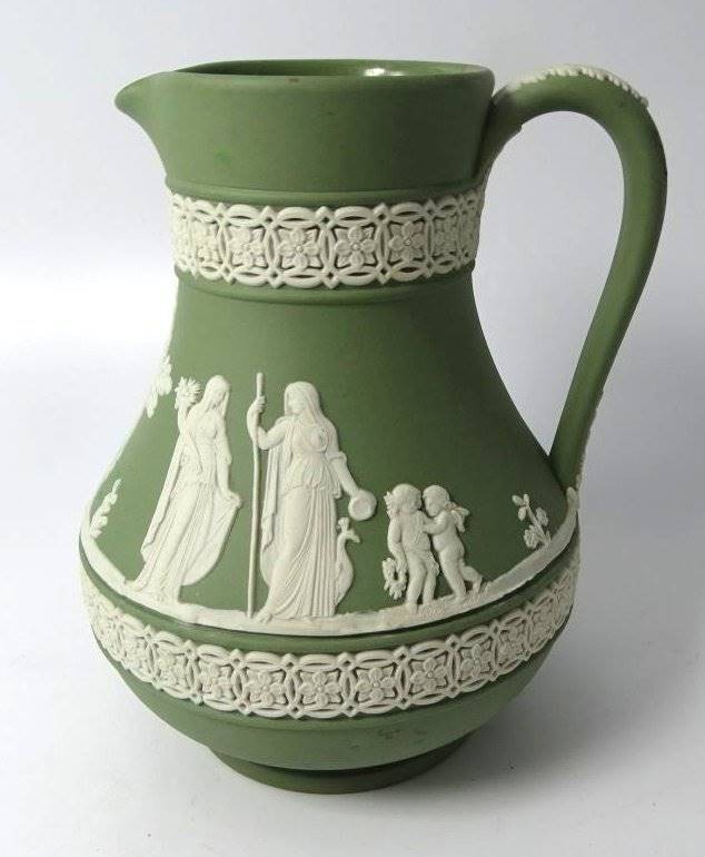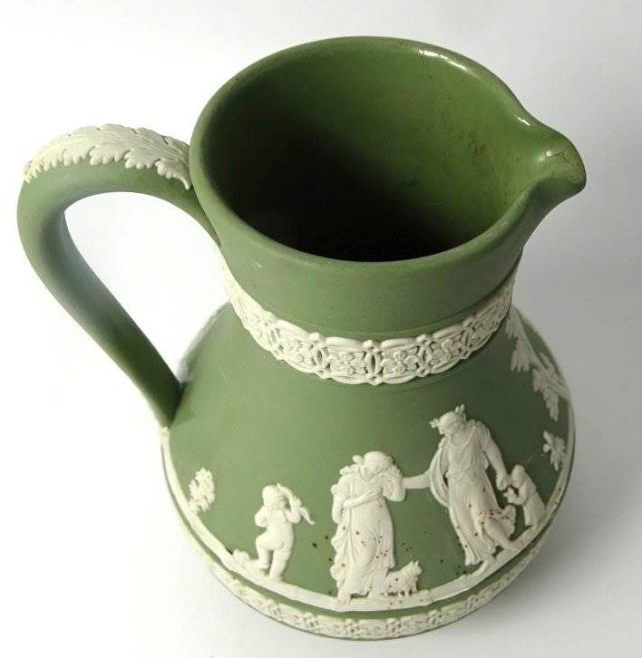 Weinkanne "Wedgwood", grün/weiss, sehr gut erhalten, H-15 cm [1]