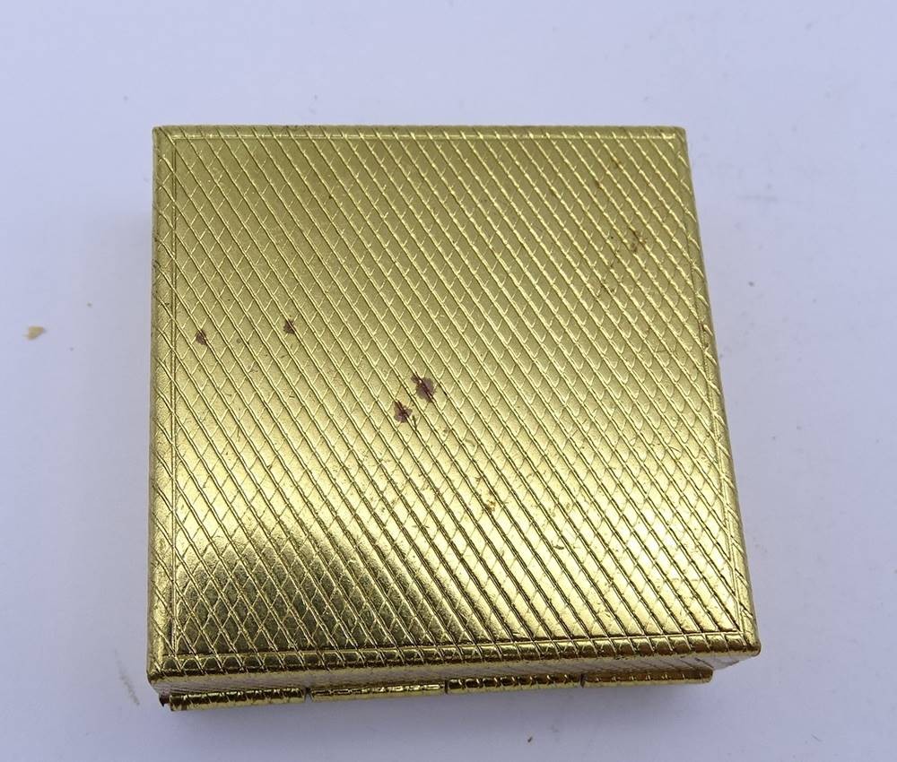 kleine Pillendose aus Metall verziert mit Perlmuttplättchen innen weiß emailliert B. 3, 8 cm H . 1,3 cm [1]