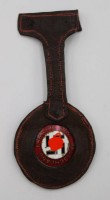 emailliertes Abzeichen "Deutschland erwache 1933", in Lederhülle, RZM Marke, 3. Reich