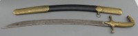 kurzer Krumm-Säbel in Lederscheide, Messing-Monturen, L- ca. 63 cm