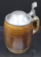 alter Bierkrug mit Zinndeckel, Deckel mit Graur " Major Höcker S/L. Kriegskameraden Adjut. Hey 3. Fr. Erg. Weihn. 1916", Krug gerissen, ca. H-16cm