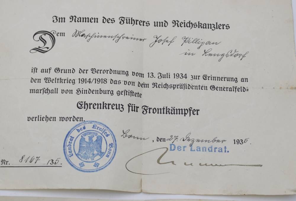- Auf militärischen Orden, Dkoumenten, Ausweisen etc. aus der Zeit des III.Reiches sind oft deren Symbole abgebildet. Beachten Sie bitte § 86 StGB! Wir versteigern diese Gegenstände nur zur staatsbürgerlichen und geschichtlichen Aufklärung Propaganda ist nicht beabsichtigt, und wir distanzieren uns von jeglichen rechten, radikalen Gedankengut.