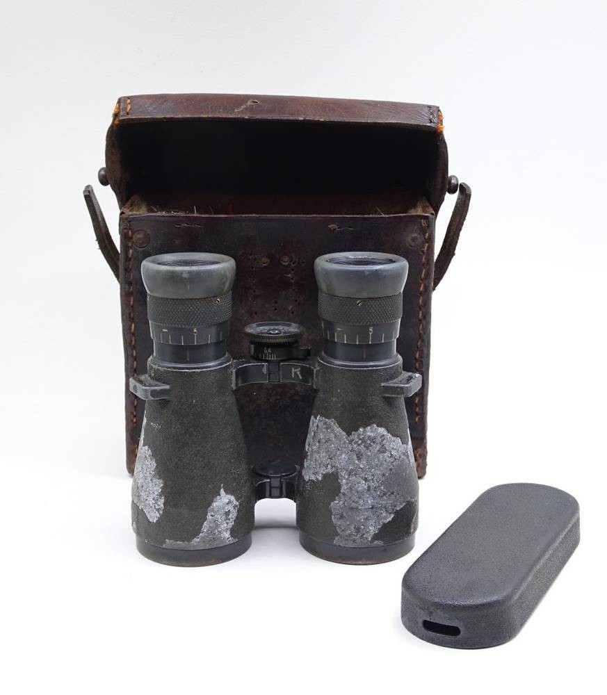 Fernglas 08, 1:16, Emil Busch AG, mit Köcher und Okularkappe, 1 WK, Alters- und Gebrauchsspuren, Riemen fehlt [1]