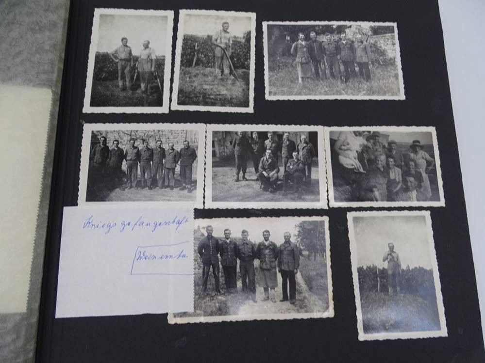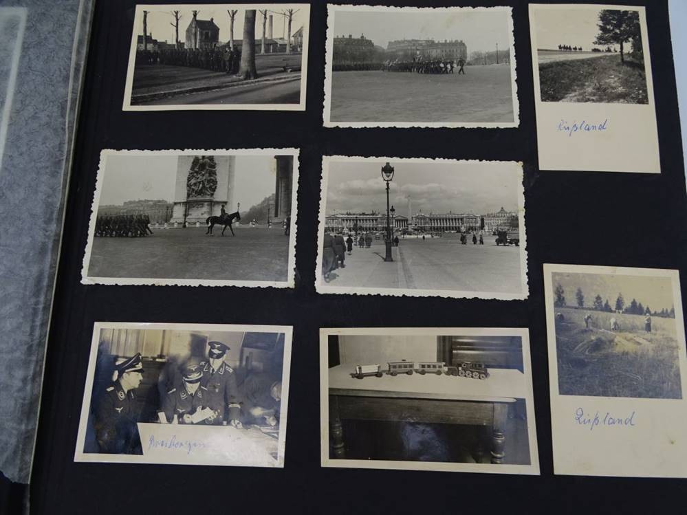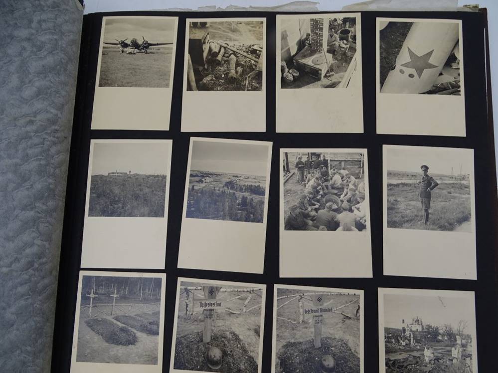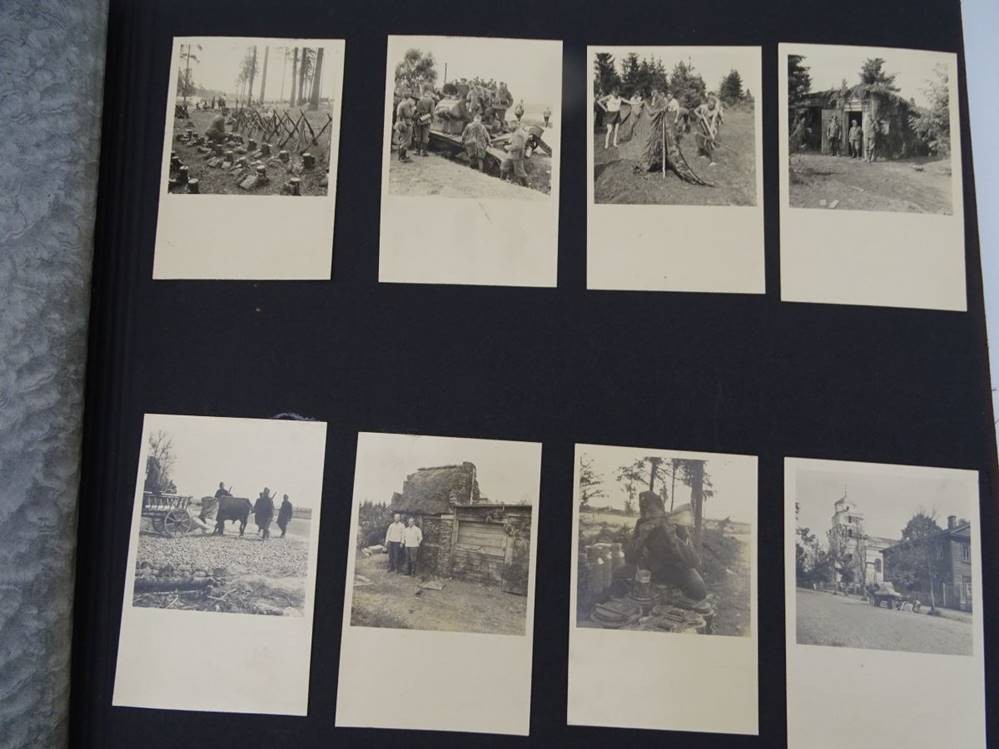 Fotoalbum "Kriegs Bilder" mit ca. 160 Fotos, davon ca. 100 mit miltärischen Motiven, Rest privat bzw. Ansichten von Russland, Frankreich etc.