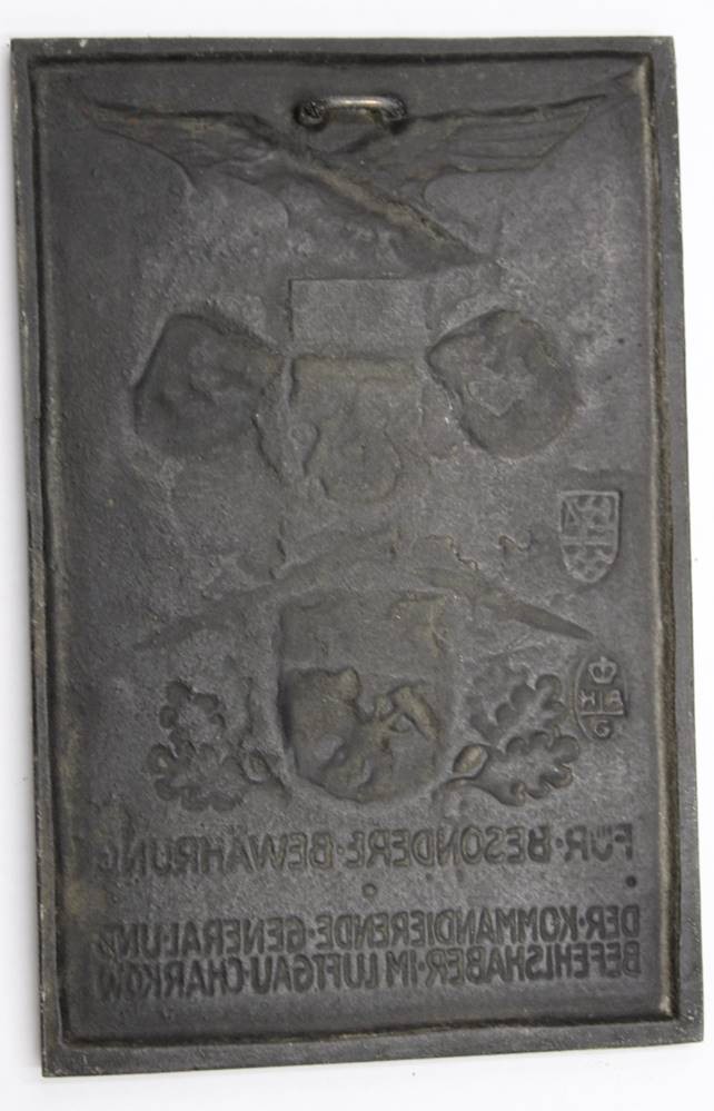 Gussplatte, Für besondere Bewährung - Der kommandierende General u. Befehlshaber Luftgau Charkow, 16 x 10cm
