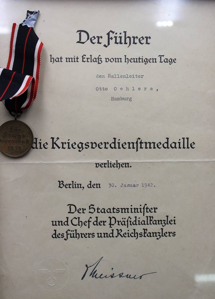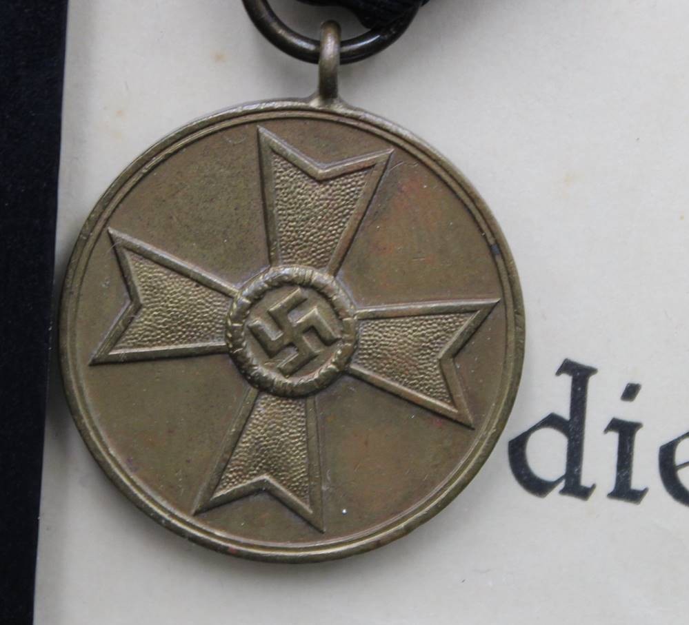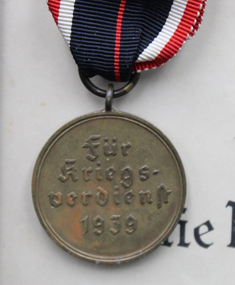 Kriegsverdienstmedaille am Band mit Verleihungsurkunde, gerahmt, RG 32 x 23cm [1]