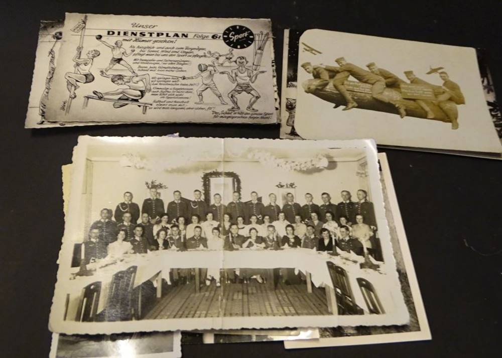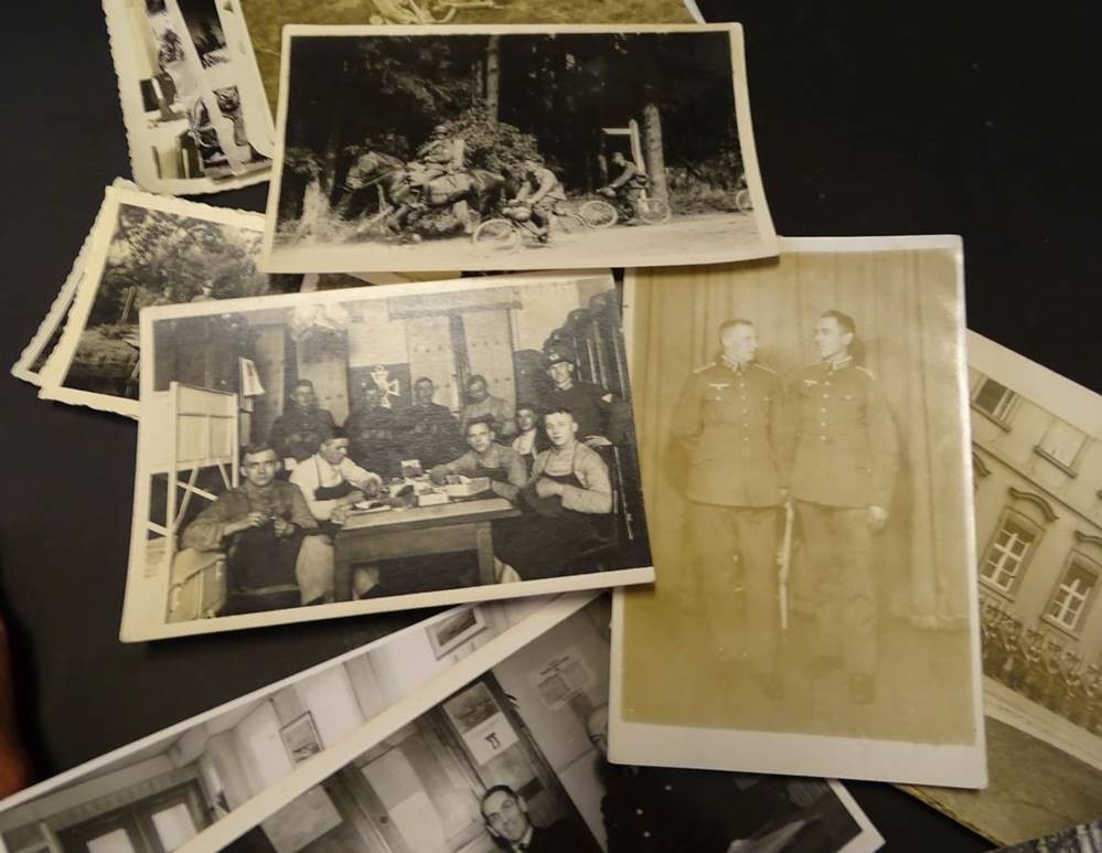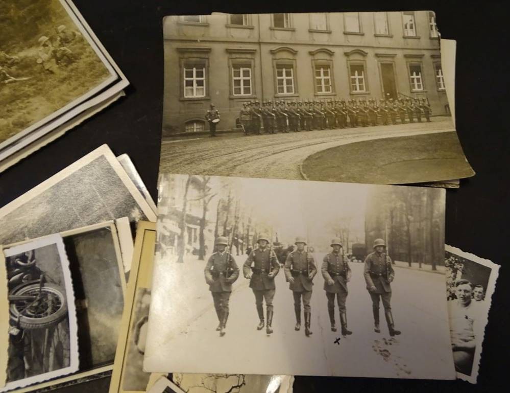 Lot Fotos mit militärischen Motiven, Wehrmacht, ca. 36 Stück, davon 6 Stück in Hülle von 1953, vor Zollamt