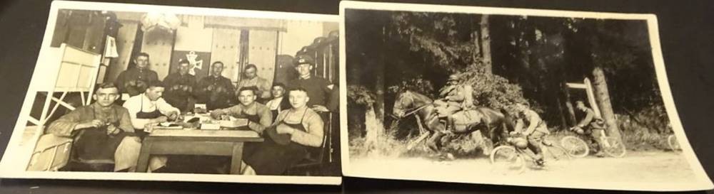 Lot Fotos mit militärischen Motiven, Wehrmacht, ca. 36 Stück, davon 6 Stück in Hülle von 1953, vor Zollamt [1]