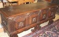 +kl. Truhe, 18/19. Jhd., Eiche, Kufen, H-52 cm, B122 cm, T-42 cm--zu besichtigen in Bülkau-Süderende 53-
