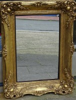 Wandspiegel, Holzrahmen mit Goldbemalung, 59 x 37cm , Spitze und oberes Stück mehrmals geklebt