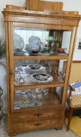 schmale Vitrine mit 3 Glasböden, Scheiben facettiert, Mahagoni