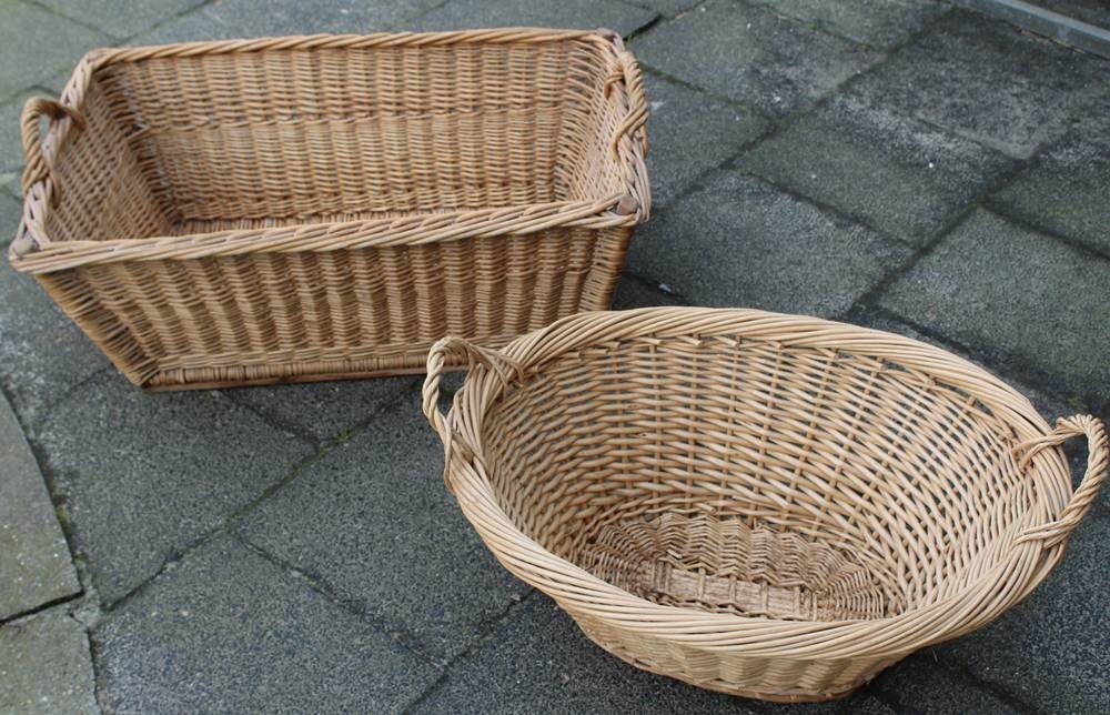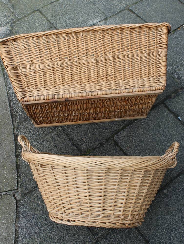 2x gr. alte Wäscheköre, Weide/Rattan, Eckig ca. 30 x 75 x 50cm [1]